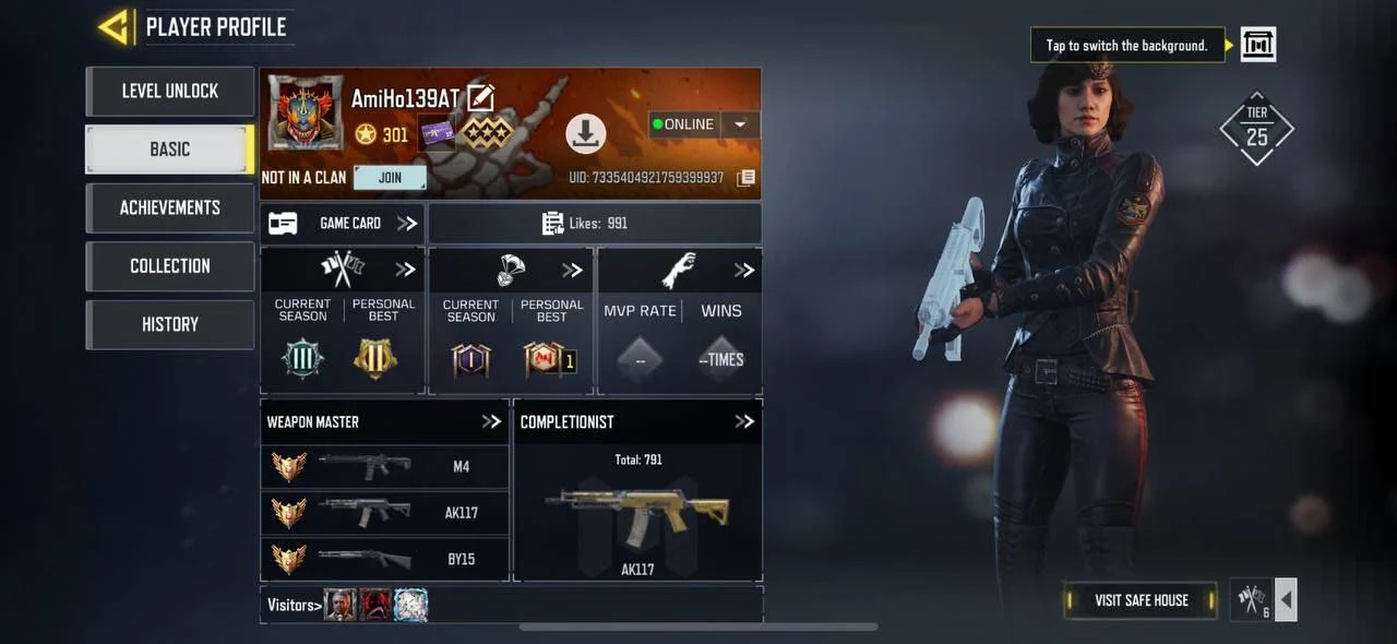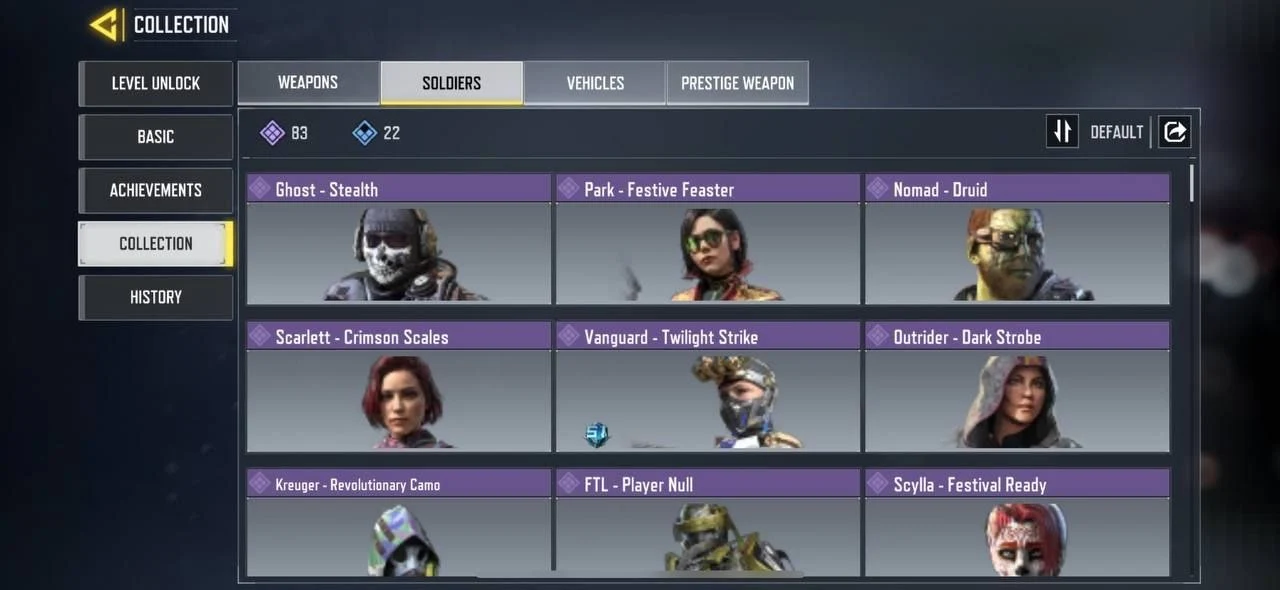 iOS Android 🌟 Level 300 🛍️ Rank Grand master 🧩 11 Legendary Skin 💯 9 Gun 🤯 2 Vehicles 😍 83 Epic Soldier ☠️ 192 Epic Gun 🌐 Code596
