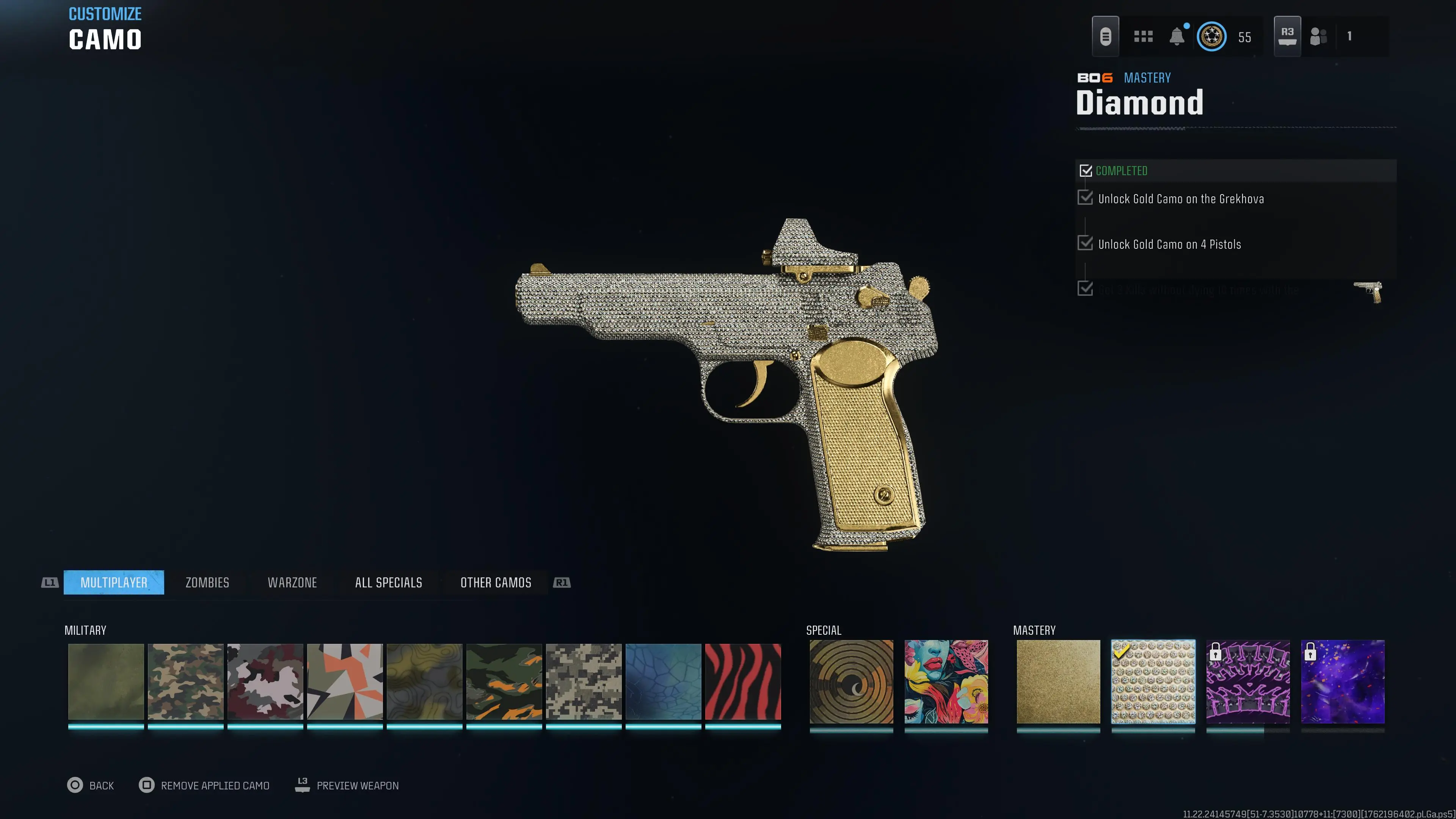 🎮 [ 23 Diamond Camos(New Meta Guns Diamond ) Dresden 9mm ⸱ Merrick 556