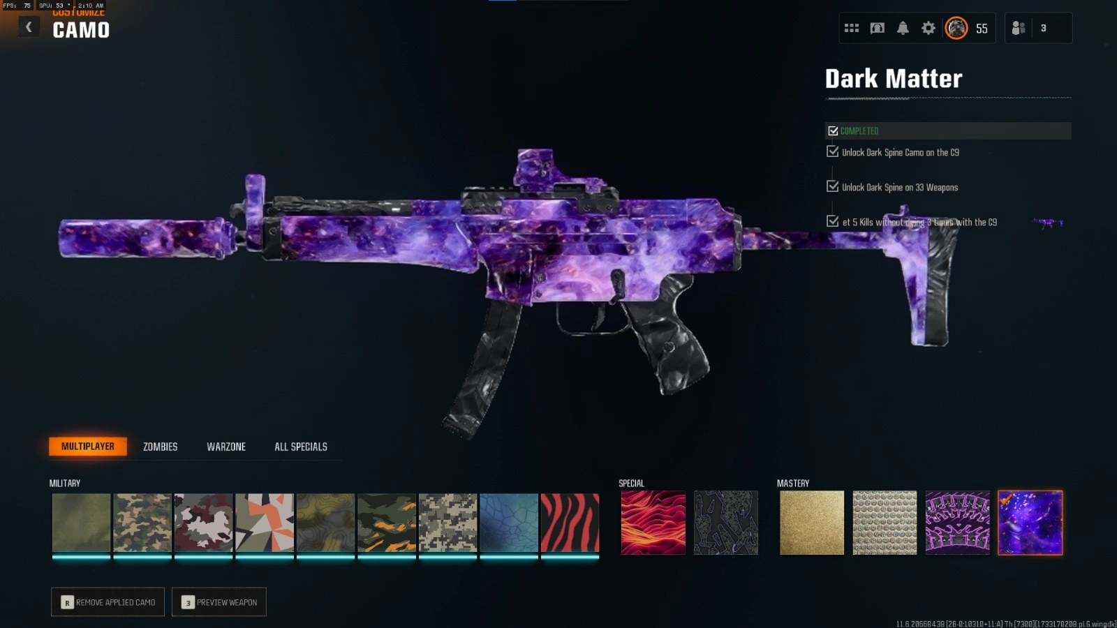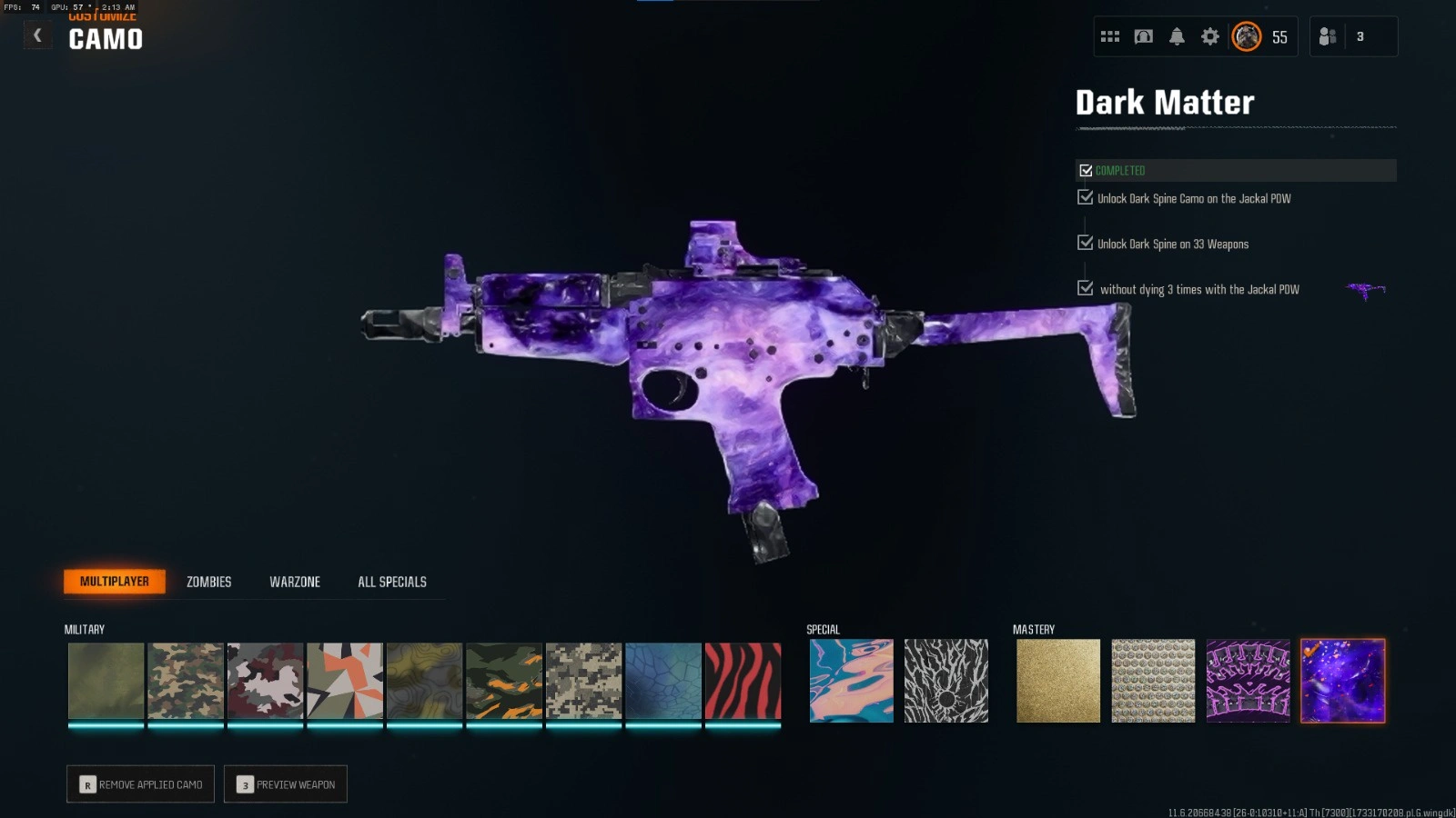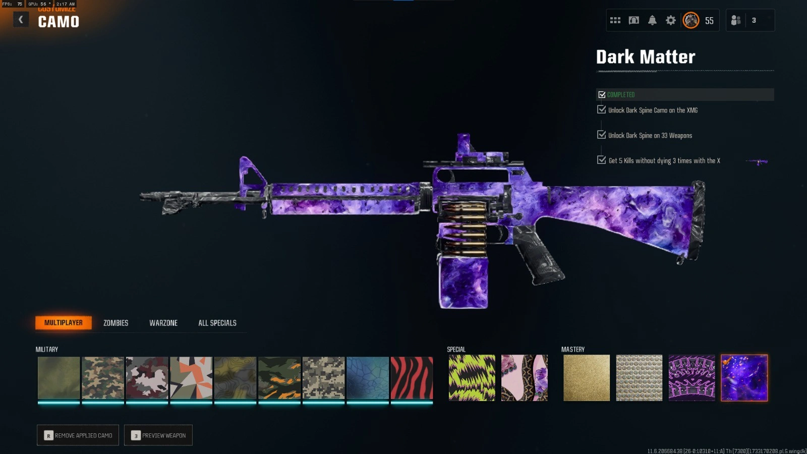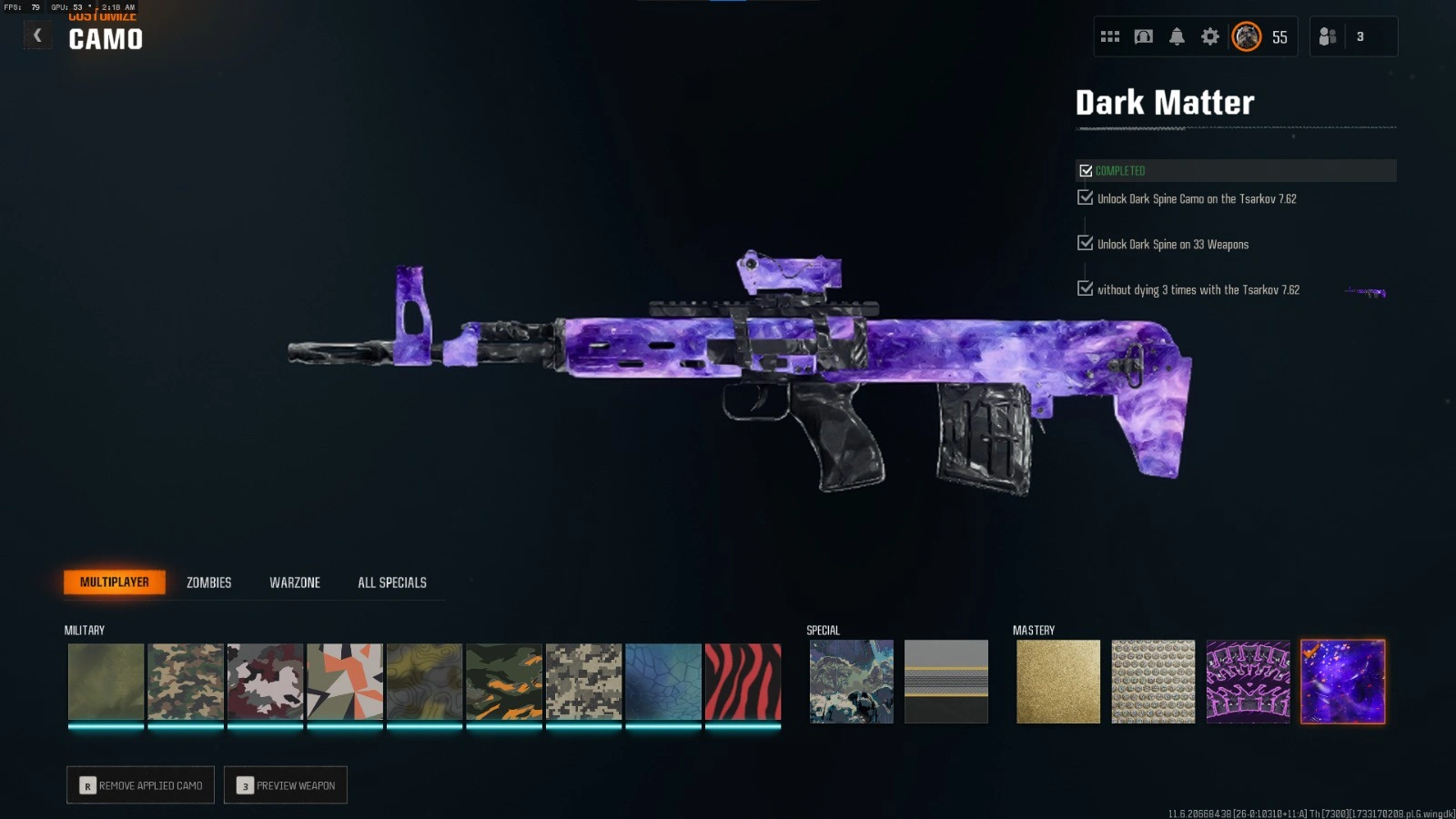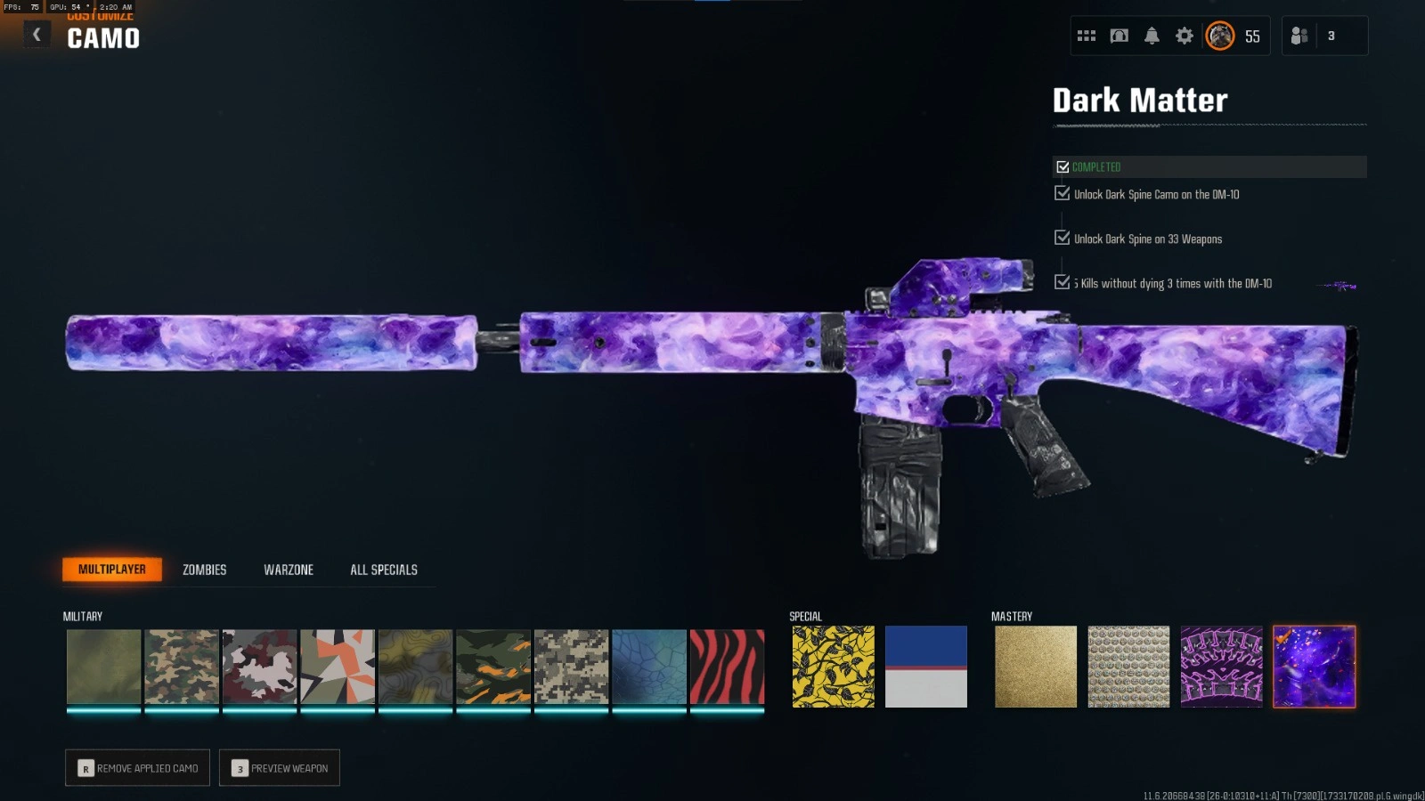 BO6 33 guns Dark Matter 🦮 Level 55 Prestige 1 🪞 Diamond 🧃 Dark Spine 🐻 Gold 🎍 All-platform support 🥁 Instant Delivery 🥬 HandLevelled