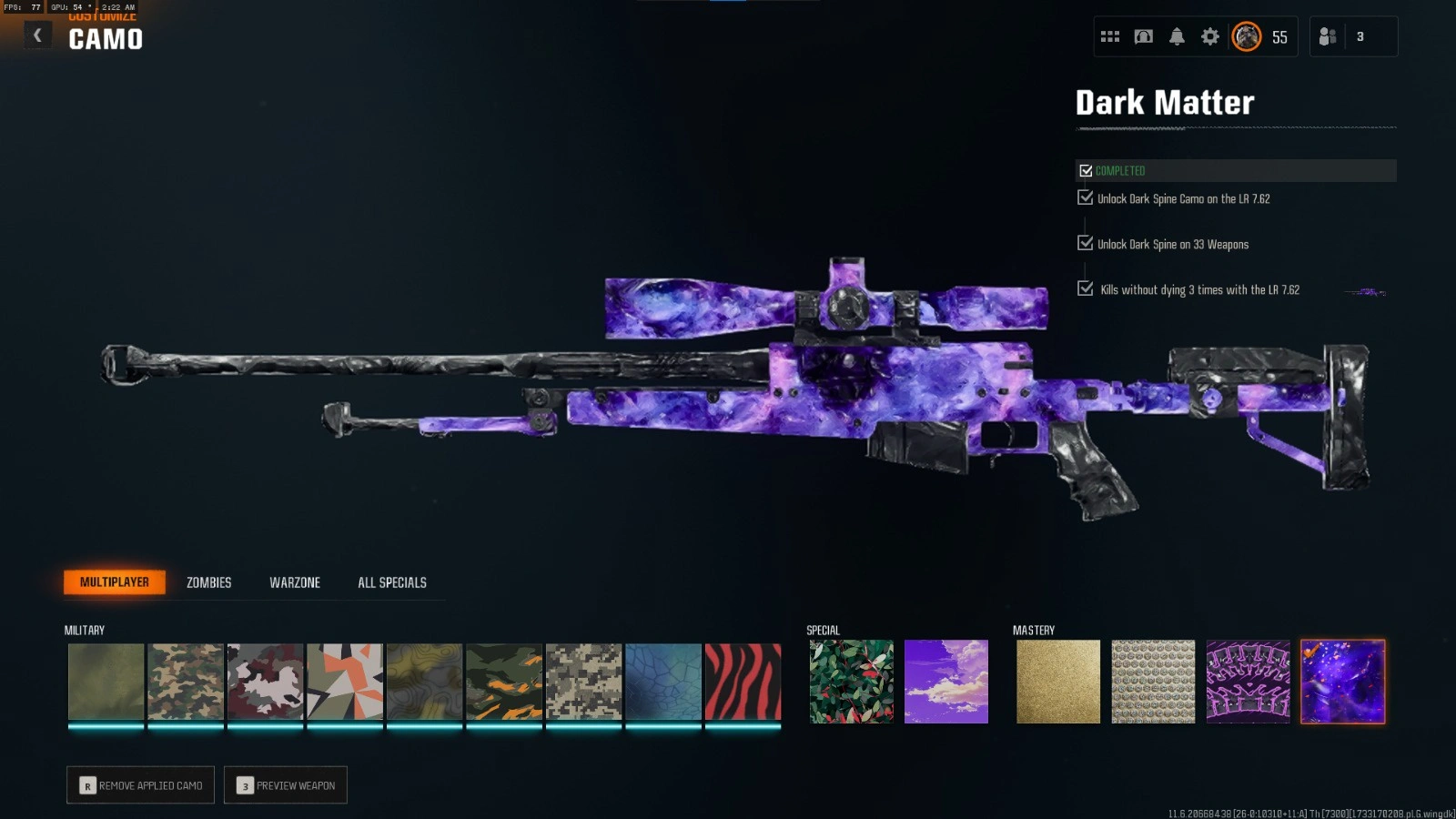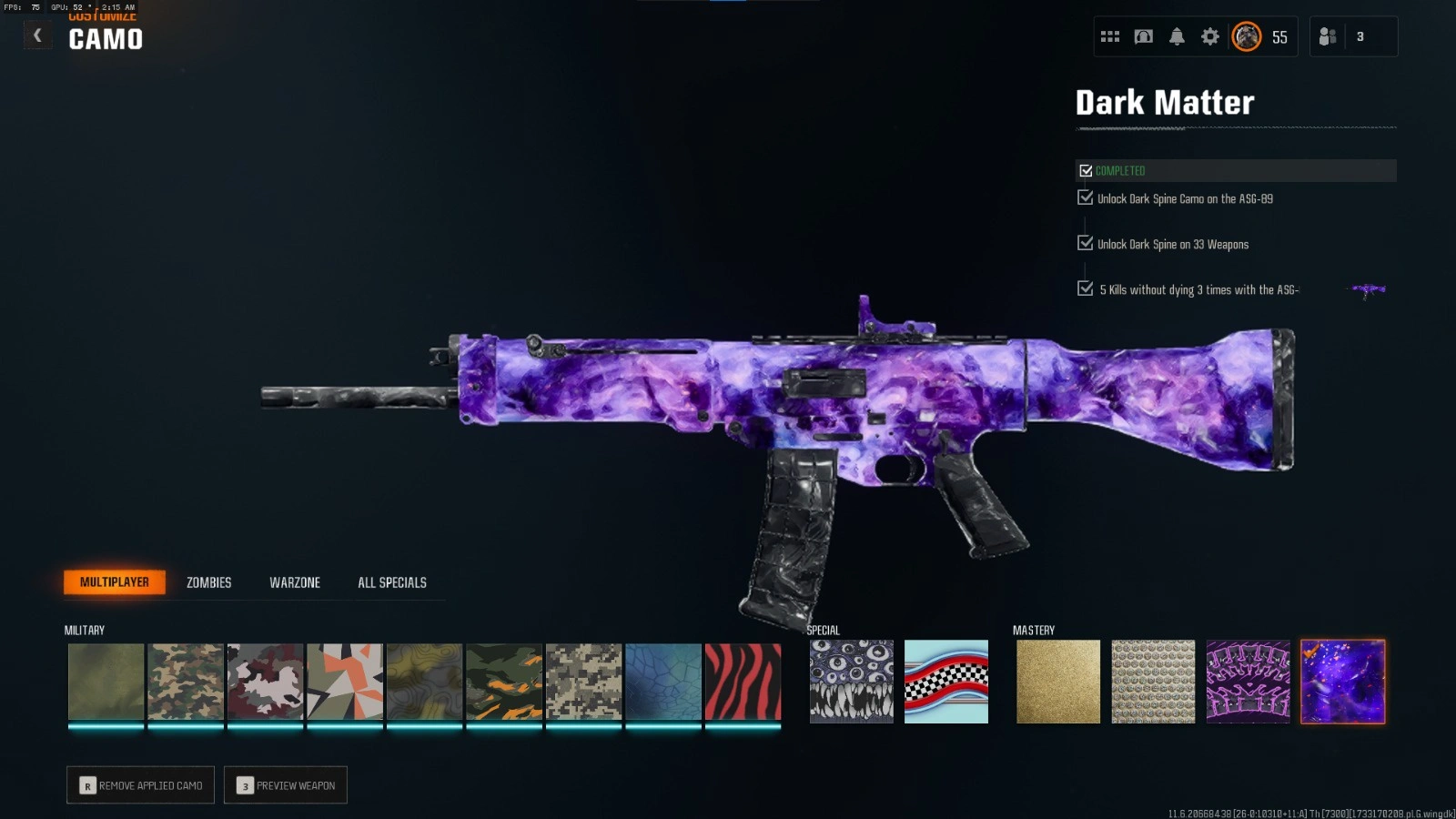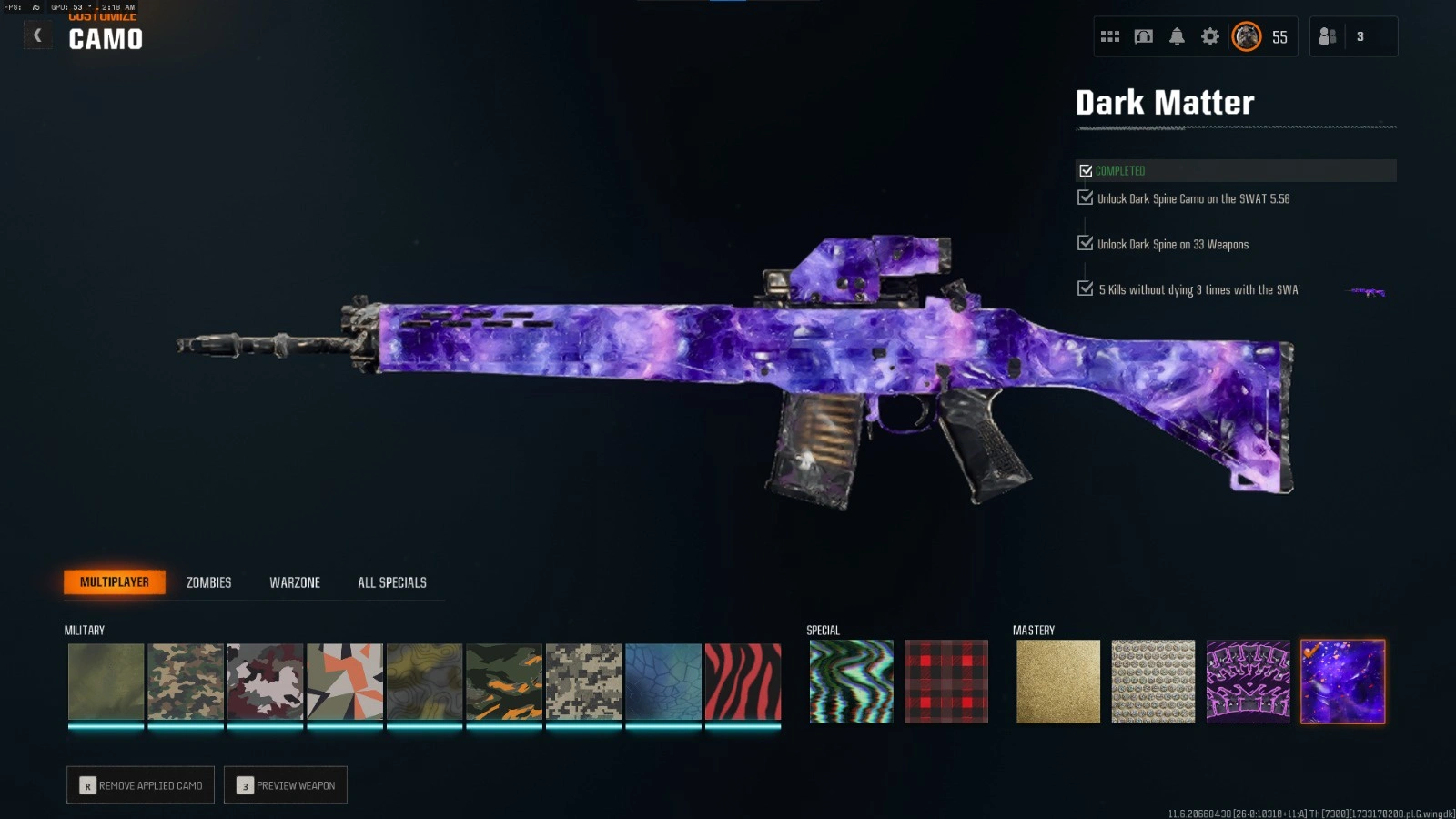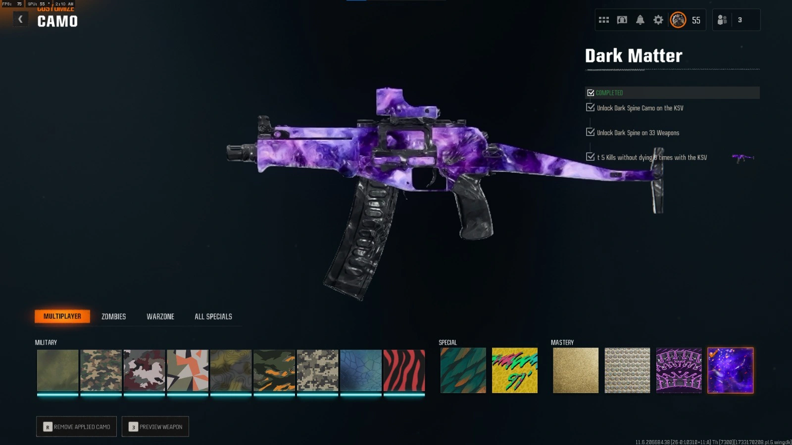 BO6 33 guns Dark Matter 🦮 Level 55 Prestige 1 🪞 Diamond 🧃 Dark Spine 🐻 Gold 🎍 All-platform support 🥁 Instant Delivery 🥬 HandLevelled