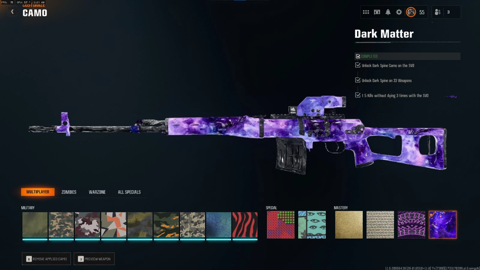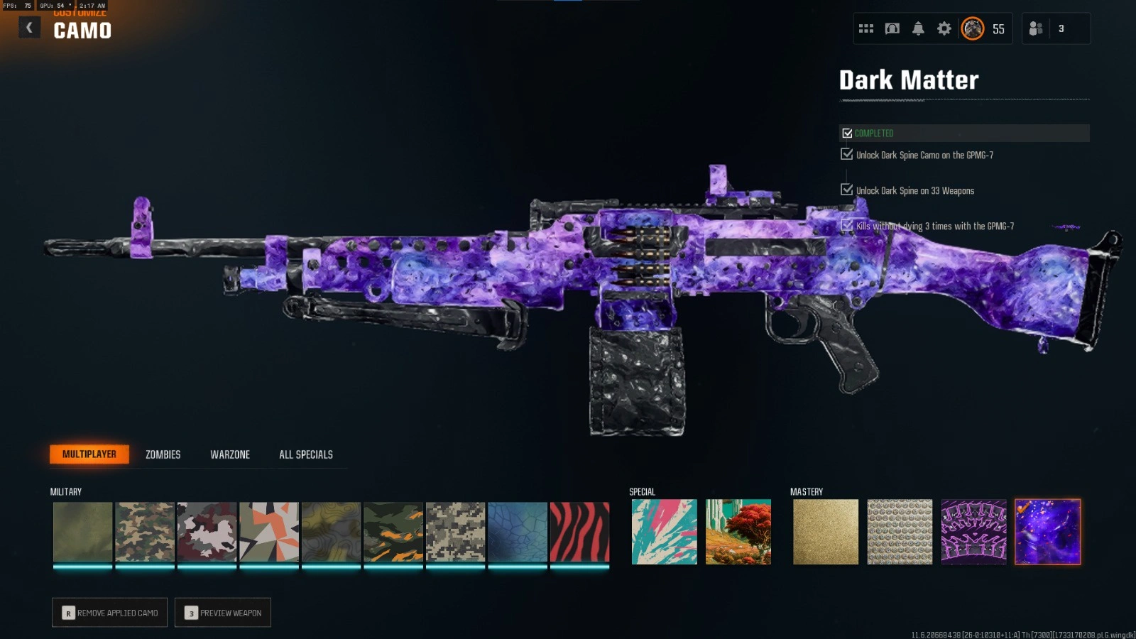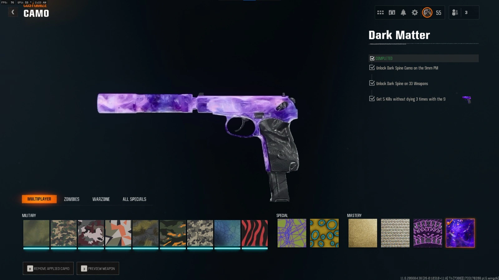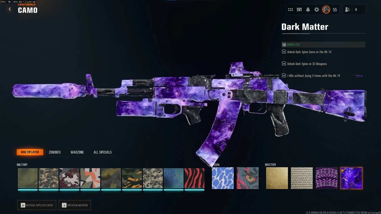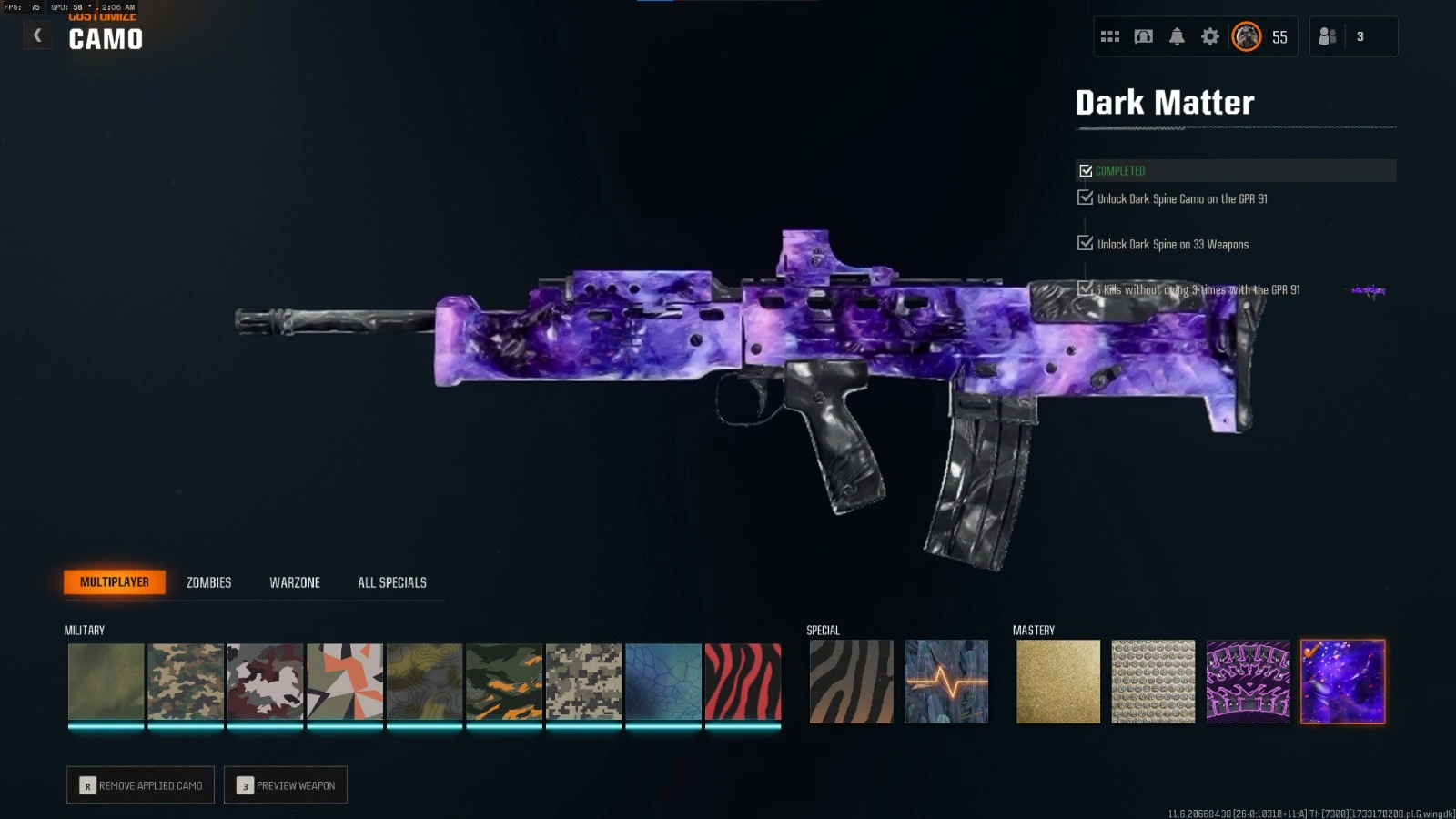 BO6 33 guns Dark Matter 🦮 Level 55 Prestige 1 🪞 Diamond 🧃 Dark Spine 🐻 Gold 🎍 All-platform support 🥁 Instant Delivery 🥬 HandLevelled