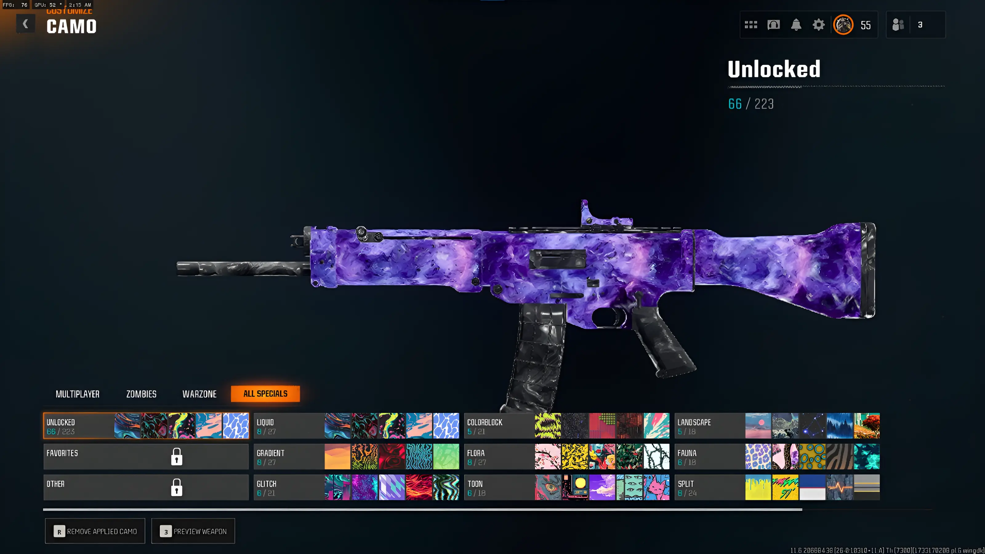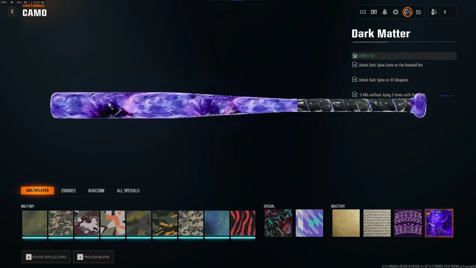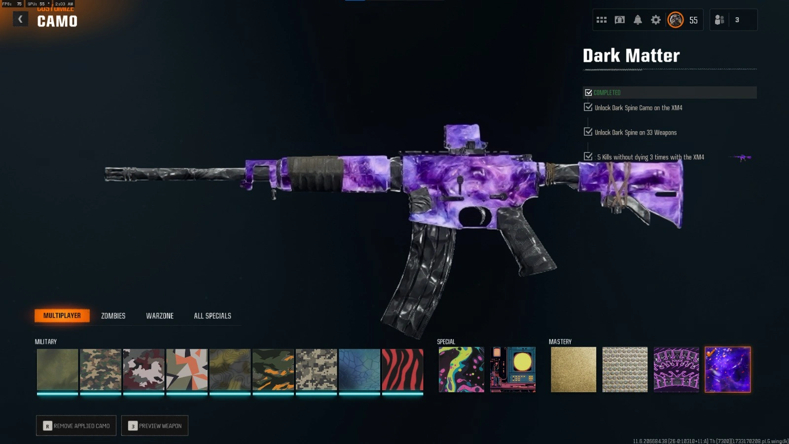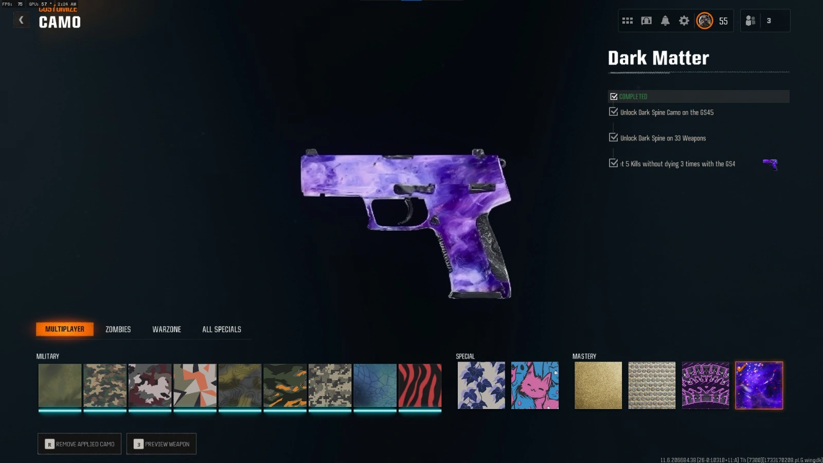 BO6 33 guns Dark Matter 🦮 Level 55 Prestige 1 🪞 Diamond 🧃 Dark Spine 🐻 Gold 🎍 All-platform support 🥁 Instant Delivery 🥬 HandLevelled