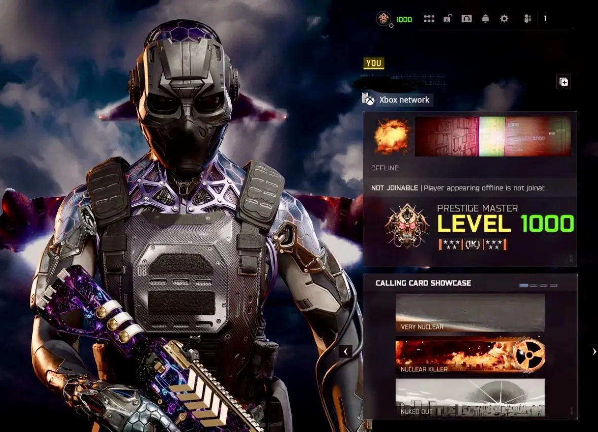 Black Ops 7 🌟 Prestige Master Level 1000 🌟 BO6 Prestige Master Level 1000 🌟 Singularity 💫 Genesis 💥 Infestation 💥 All Maxed Guns 🌟 FFA / Very Nuke / Nuke Killer 💫 Rare Level 1000 Camo & Skin 🌟 Full Access & Faster Delivery