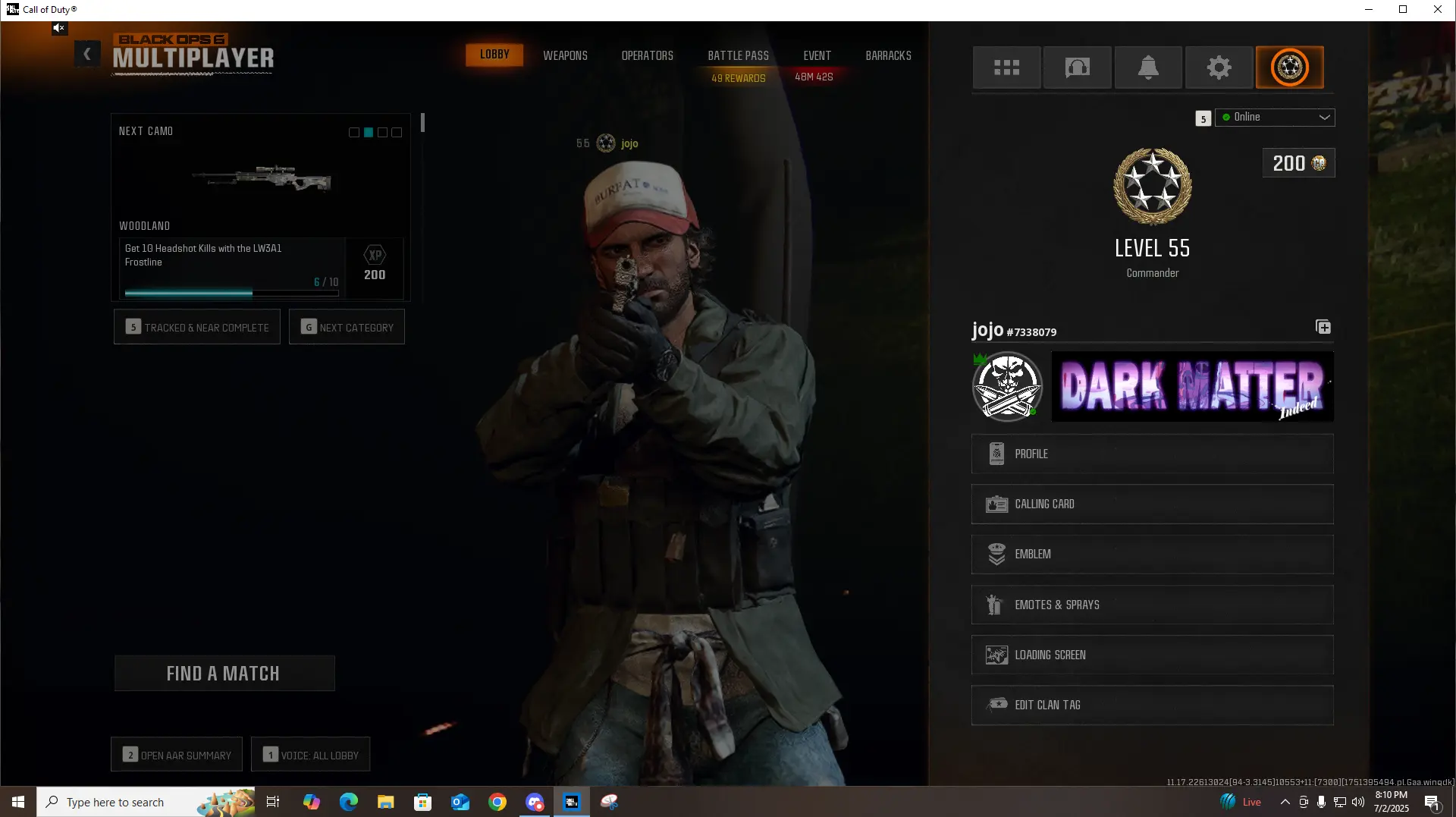 BO6 Dark Matter + 50 Wins 🏆 | 495+ Camos 🎨 | Max Level 55 ⚡ | Prestige Ready 🏅 | Full Access 🔐 | Linkable to All Platforms 🎮 | Warzone 4 Ready 🔥