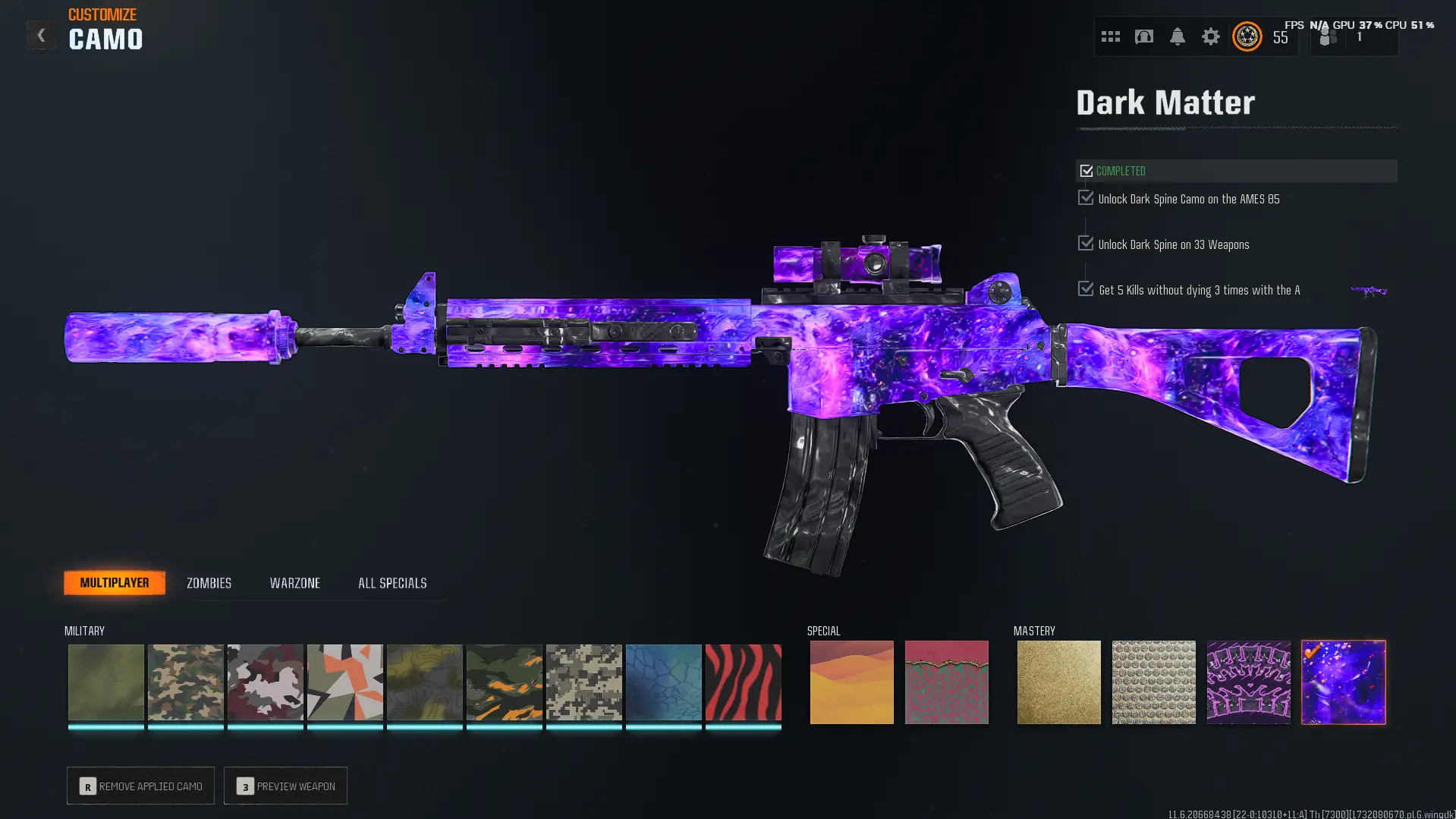 【✔ BO6 ✔】【 Dark Matter + Prestige Master 】 ⚔ All Multiplayer Camos Unlocked ✨ Prestige Master ⚡ Dark Matter Legit Unlocked on 38 Black Ops 6 Guns ☄ Linkable to STEAM / BNET / XBOX / PSN #ZBS21XAJ