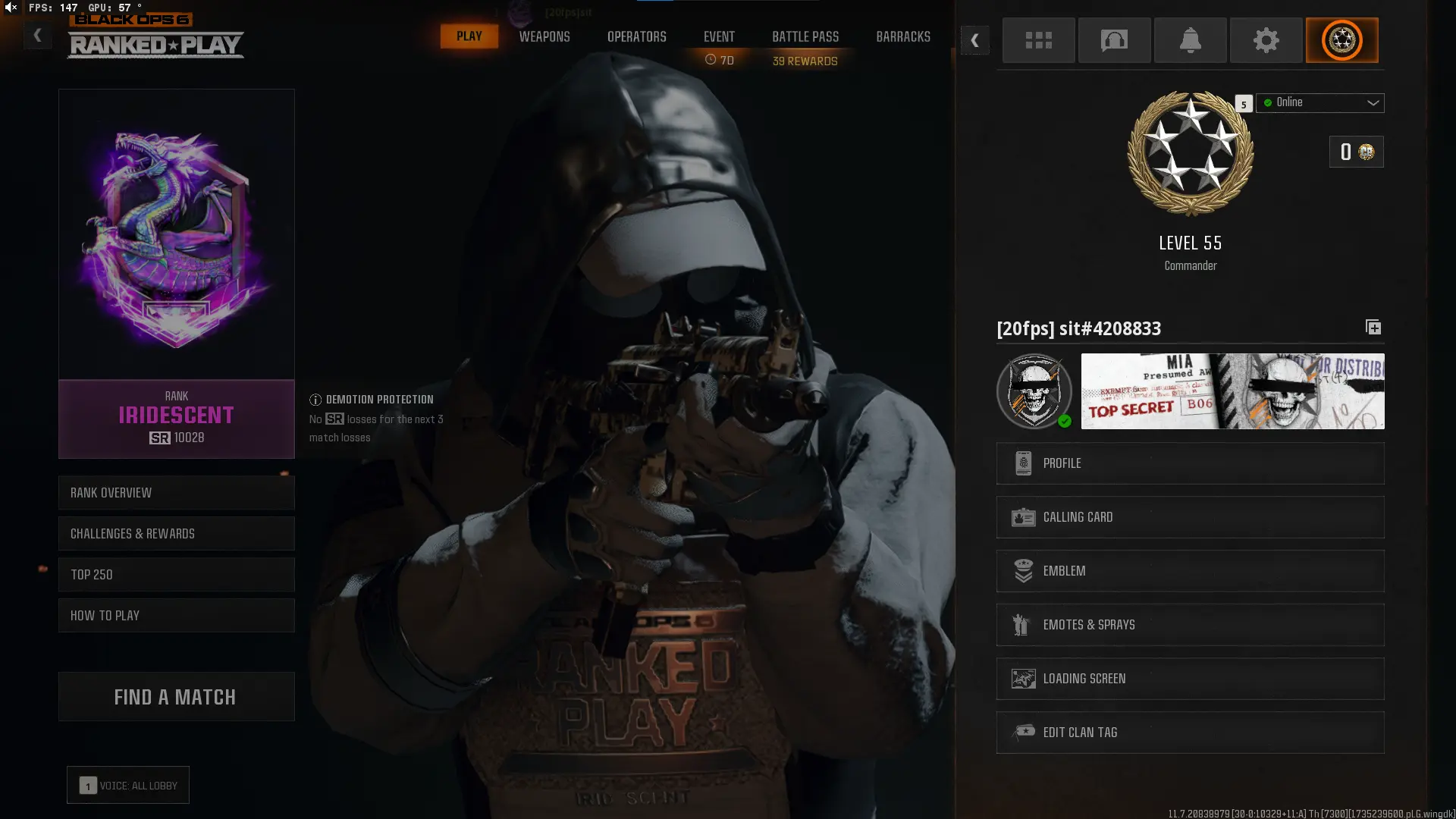 📔 BO6 【✔ Iridescent Rank SZN 4 . 10028 SR 】⚡ Level 55 🔒 Full Access 🌟 All Info is Changeable 🔗 Linkable to STEAM / BNET / PSN / XBOX ✔ IRI SZN 4 ☄ #ZBMQ5A