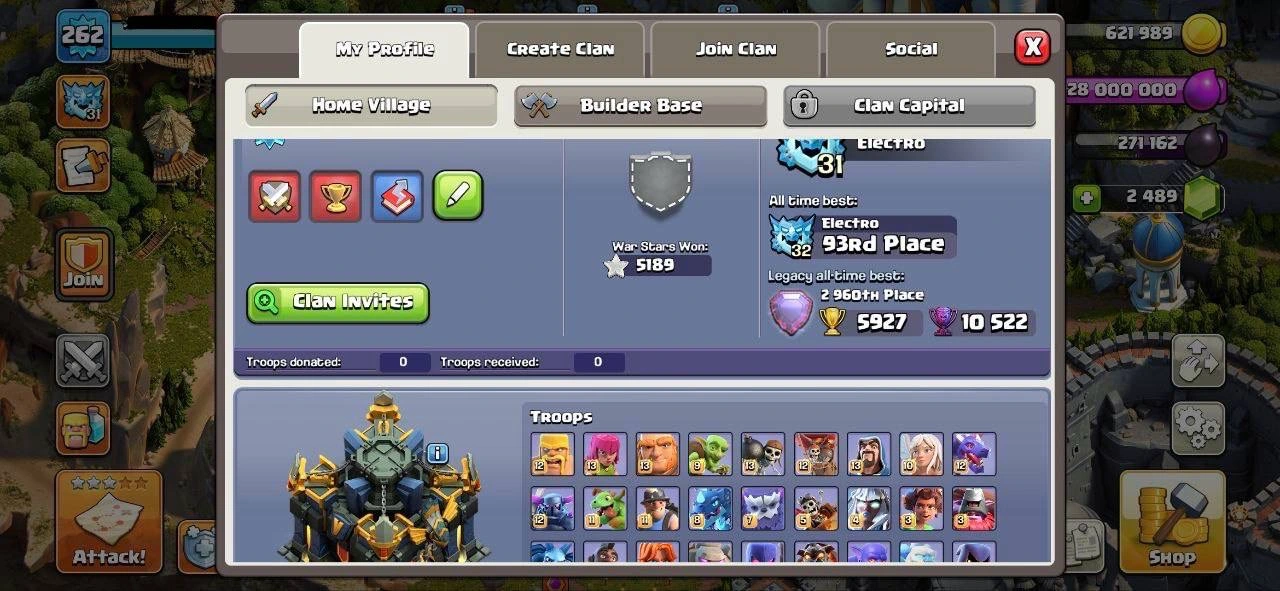♻️ 30 EQUIPMENTS MAX ♻️ TH 17 MAX FULL ♻️ 10 EPIC MAX ♻️ 11th EPIC LV 23 ♻️ 3x SCENERIES ♻️ 1100+ CWL MEDALS ♻️ HERO SKINS ♻️ STACKED ♻️ INSTANT EMAIL ACCESS ♻️ S09