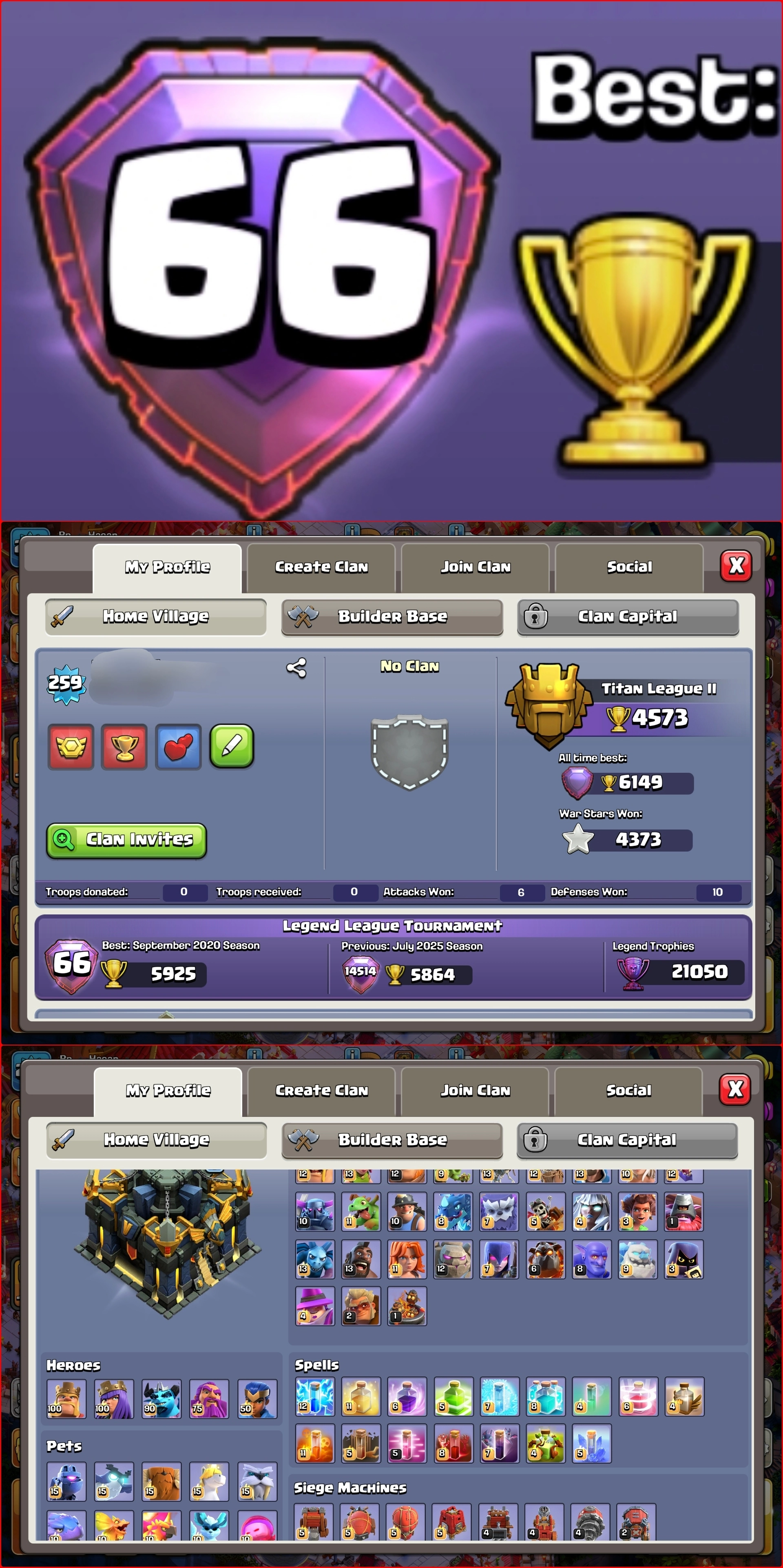 66 World Rank *Crazy Rare TH17 99% Maxed* Legendary YOS Scenery + Massive 4.3k WS | 21 Max Type Equipments, NC Available RP09