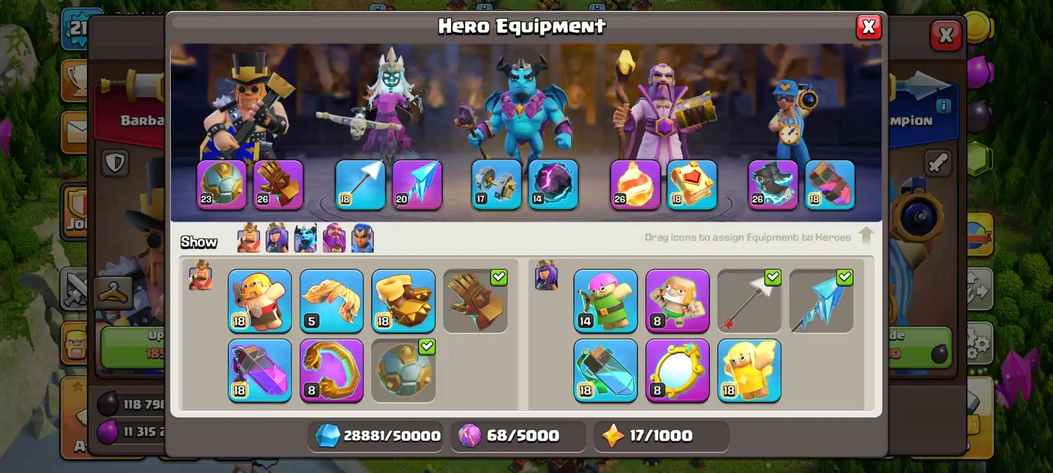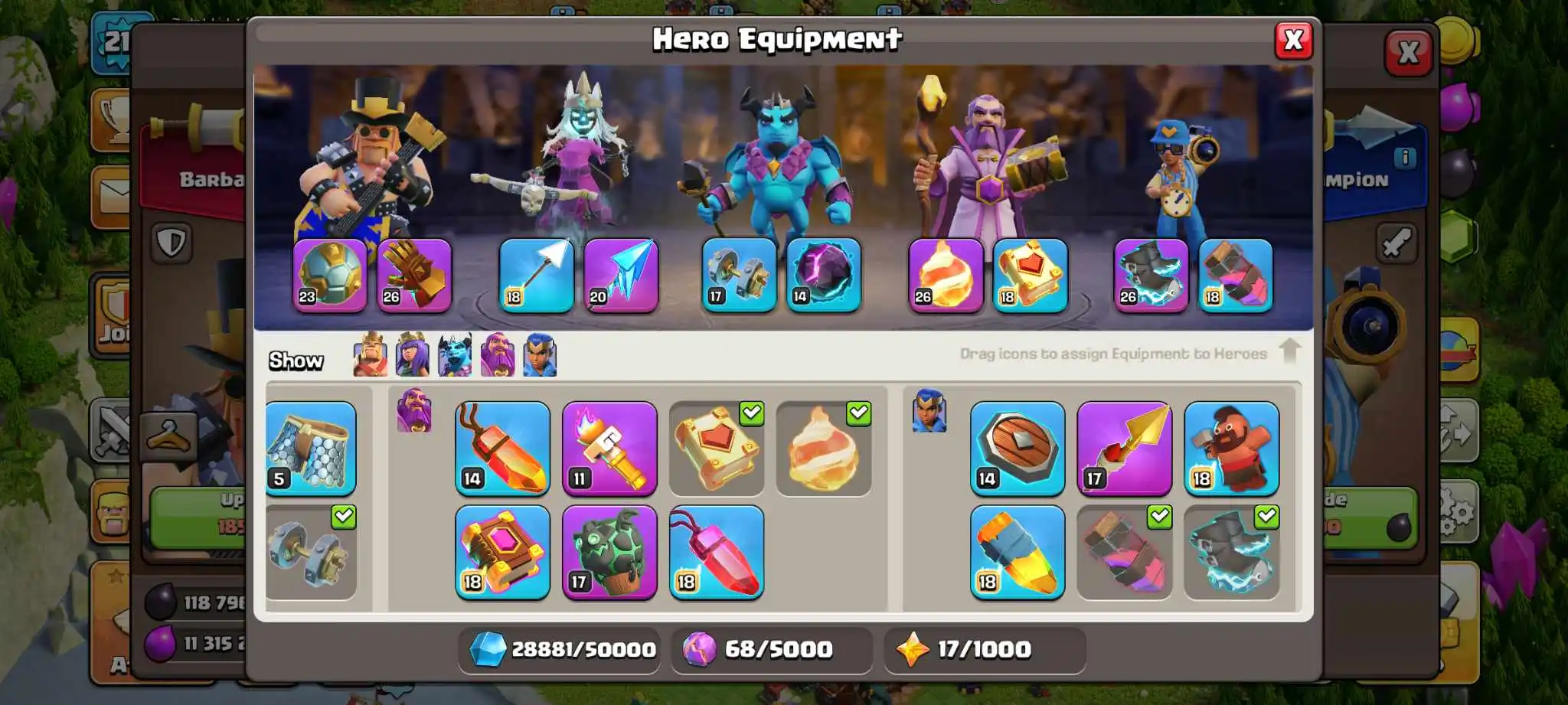 7000+ Gems 🎯 TH 17 High Defence 🎯 High Epic (GG-26/FB-26/EB-26/SB-23/FA-20) Total 11 Epic Equipment 🎯 High Heros 🎯 400+ Cwl Madel 🎯 2000+ war Star 🎯 Best Deal 🎯 Super Fast Delivery