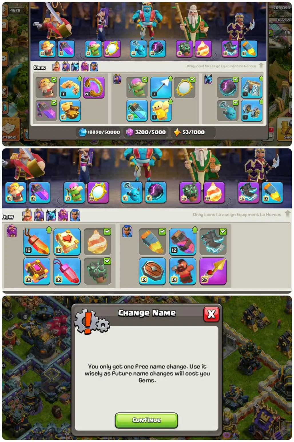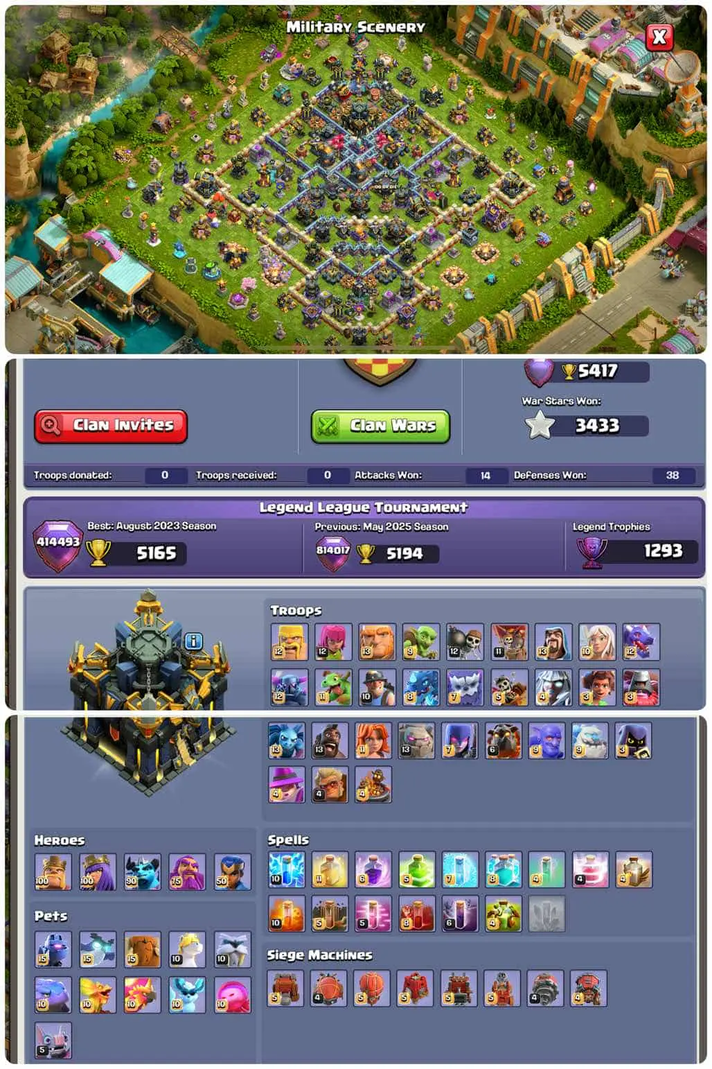 9 Epic Max➤Rare War Arena➤Egypt, Spooky Scnery➤Rare 259 XP➤TH17 Maxed➤Heros:All Maxed➤Heros skins:75➤Blacksmith Max➤BH10 Max➤Safe and INSTANT DELIVERY#F
