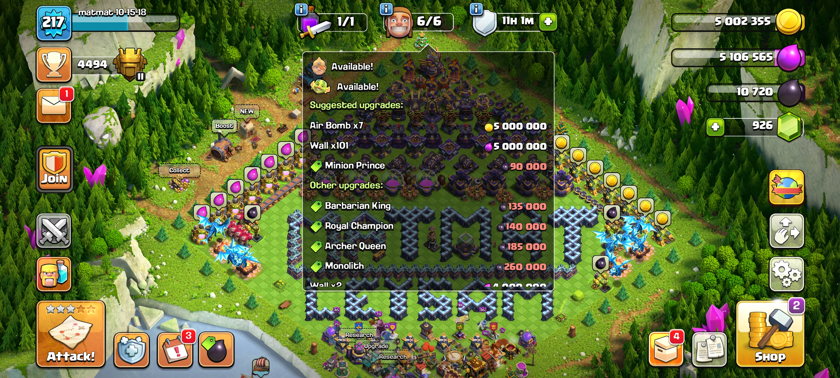 🍀 900+ GEMS 💎TH 16 STRONG ACC 💢{ GG & EB } EPIC EQUIPMENT 🌲 HEROES 64_75_46_50_27 🔻217 XP LVL 😖 500 NC 💎 COOL MAGIC ITEM 🐺 2 HEROES SKINS 🔺 SUPER FAST INSTANT DELIVERY 🚚
