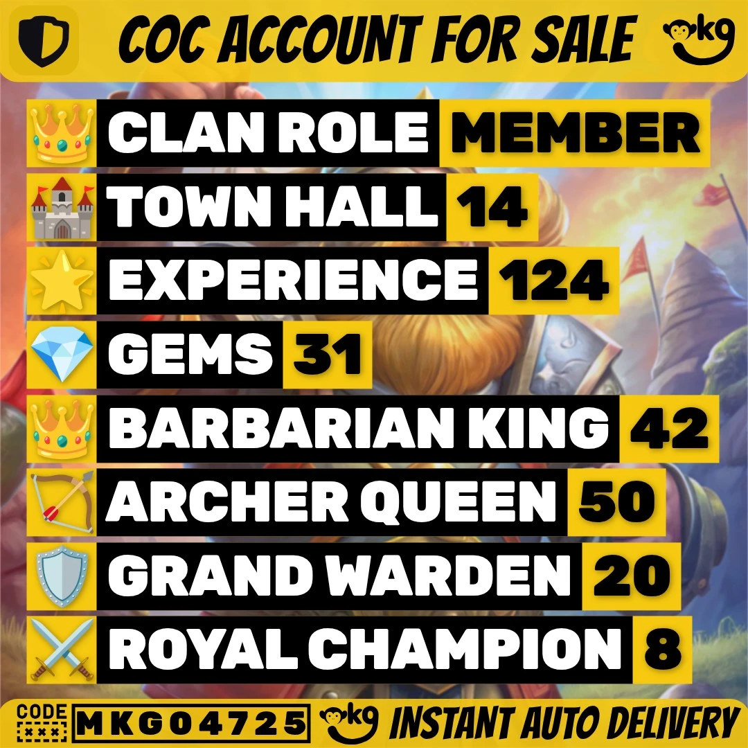 🌟 Clash of Clans 💫 TH14 ✨ Level 124 ✨ BK42 AQ50 MP43 GW20 RC8 ✨ 80% Walls ✨ 31 Gems 🔰 Complete Access 🌟 Instant Delivery !MKG04725