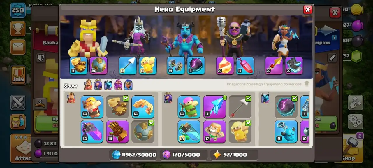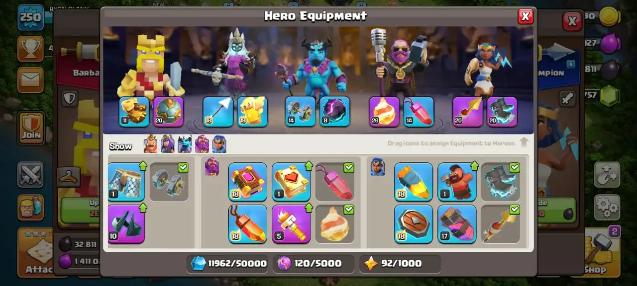 Big sale🔥TH 17 almost max🔥high heroes level 83/91/70/75/41🔥high level pets☠️9 epic equipment⚒️6 builder’s⚒️all helper opened✅cn on