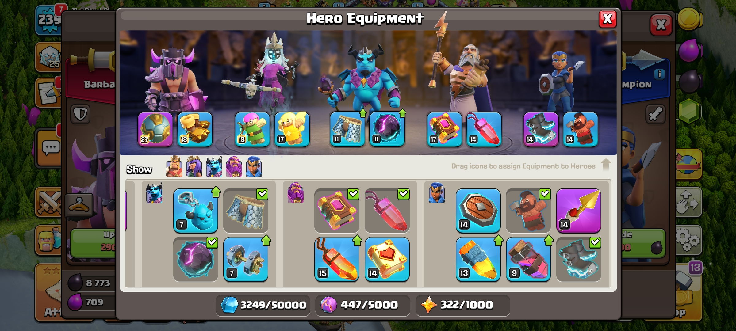 CC-100 TH17/LV 239 [ 6 Epic Equipments / Max 1 ] Heroes 91/98/70/70/40 | 6 Hero Skins | BH Max | Good Equipments, Hero & BH