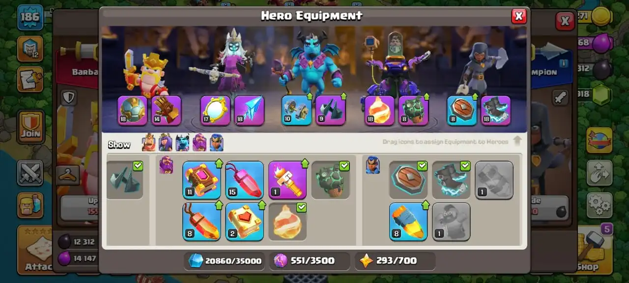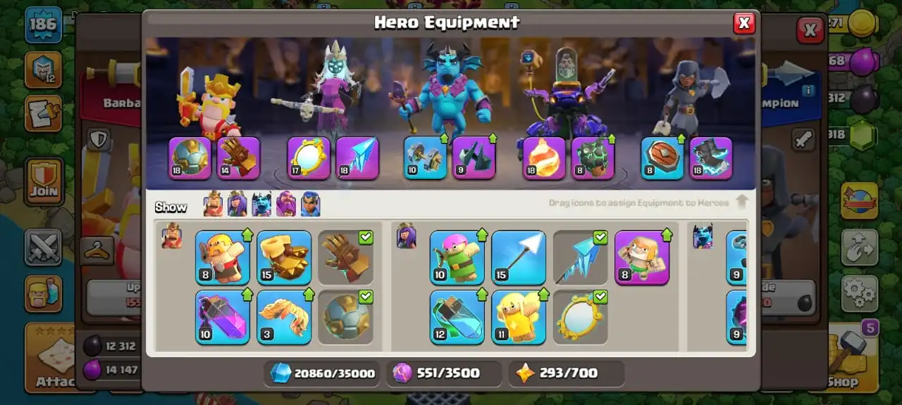 Max heroes☠️4 max epic equipment⚒️6 builder’s✅6 heroes skin