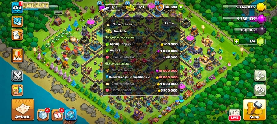 Rare☠️4 max epic equipment🔥TH 17 almost max🔥max heroes🔥max pets☠️full equipment 33/33💎7354 gems⭐️2000 cwl medal