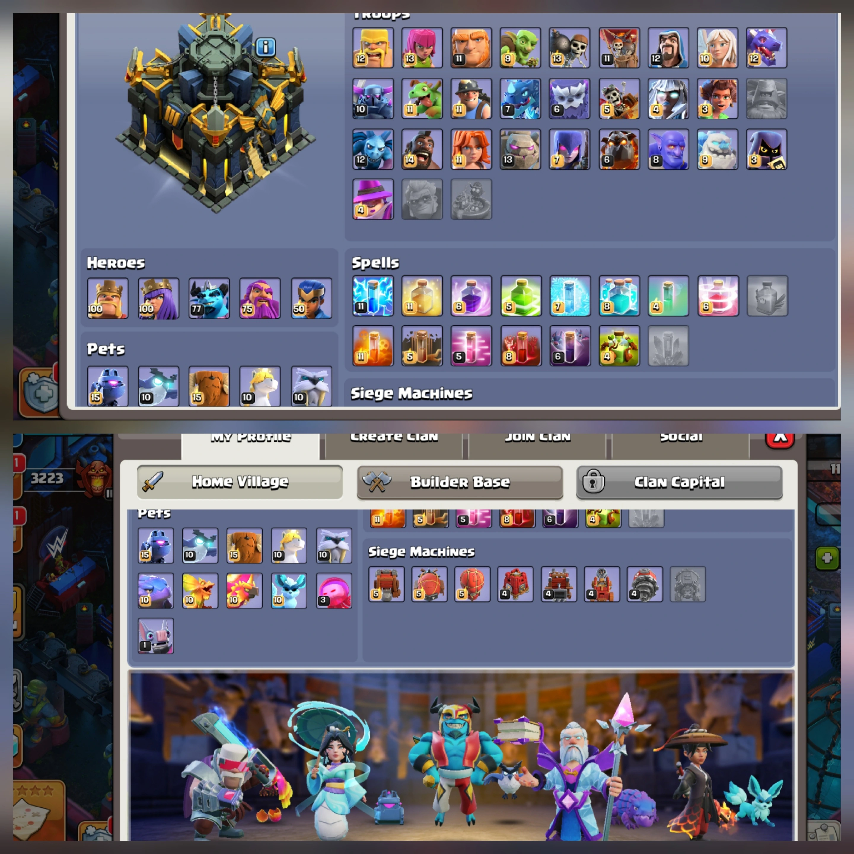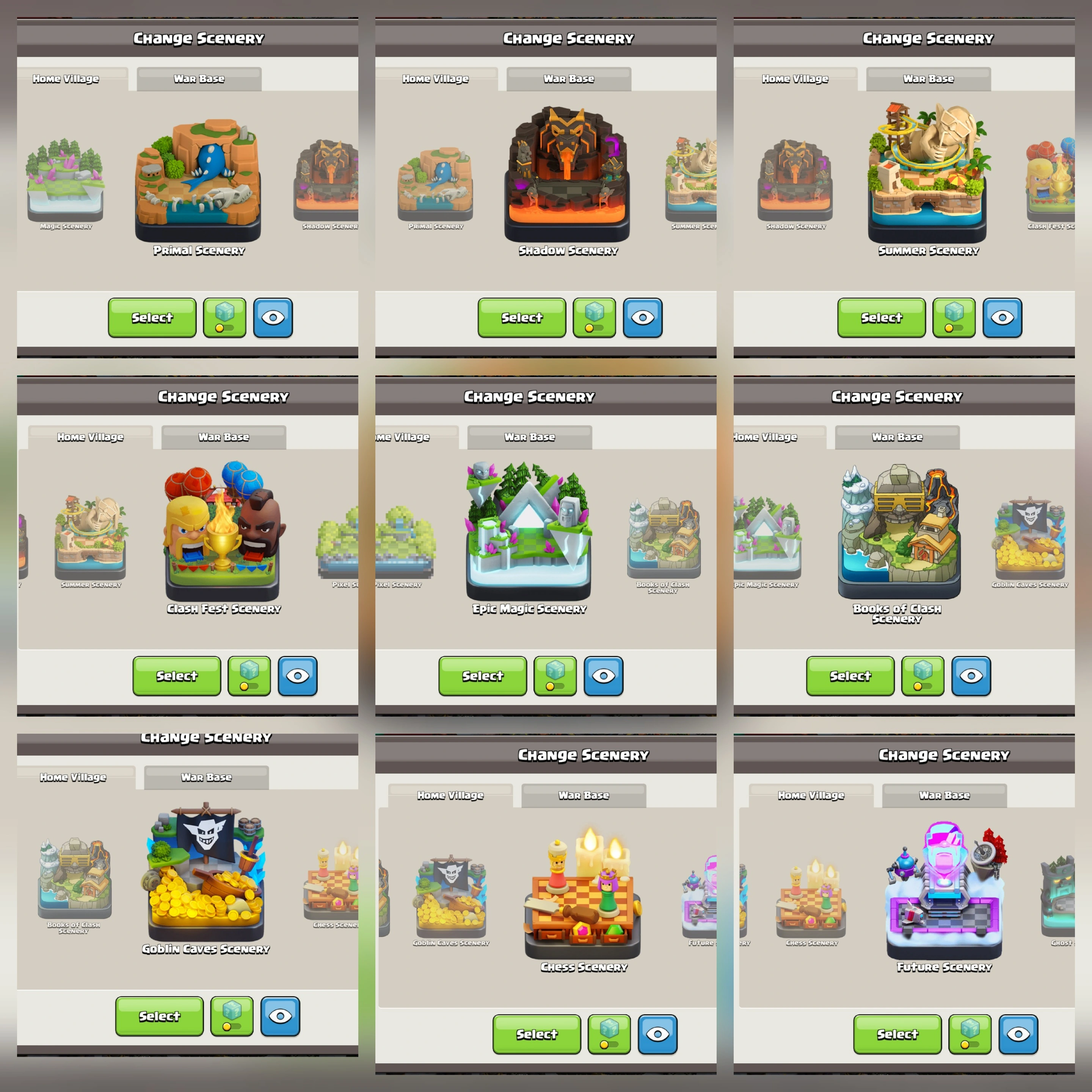 Super rare [[ 20x rare scenery ■ 40x Hero skin (20x legendary skin ) ■ snake set ●future set ● league skin ● full max th 17 account ● wall max ●hero all max ● epic max ● NC available