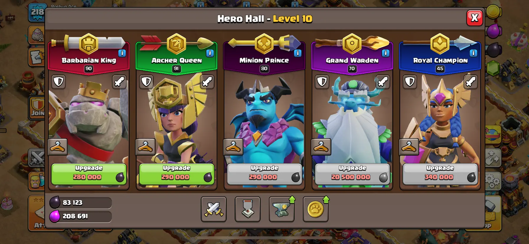 TH 16 ALL MOST MAX [ 16 HERO SKIN ] HERO LEVEL 91-91-80-70-45 EQUIPMENT EPIC FULL 🔥 REMAINDER HERO🔥 CN FREE GEMS 6.546🔥 SCENERY ON 🔥 INSTAN DELEVERY 💯