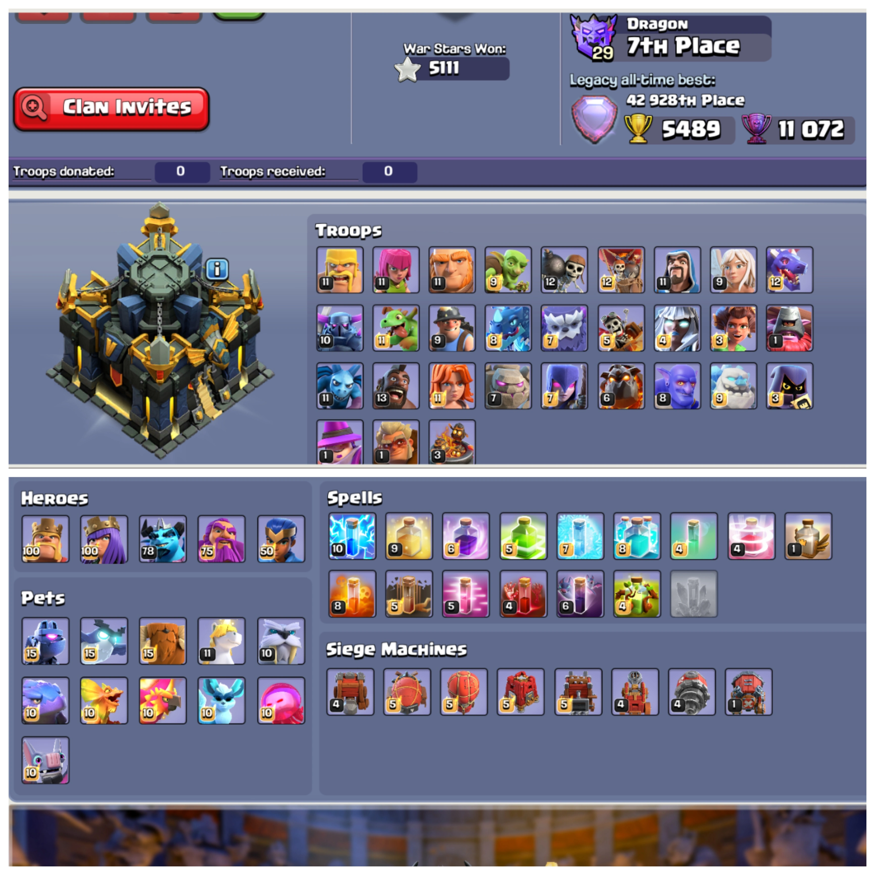 ⚡ TH 17 Almost Max ⚔️ XP 256 • 9 Epic Equipments 🌳 Good Old Clash Trees • Max Heroes • Laboratory Mostly Max 🏰 Max BuilderHall 🚀 Instant Delivery