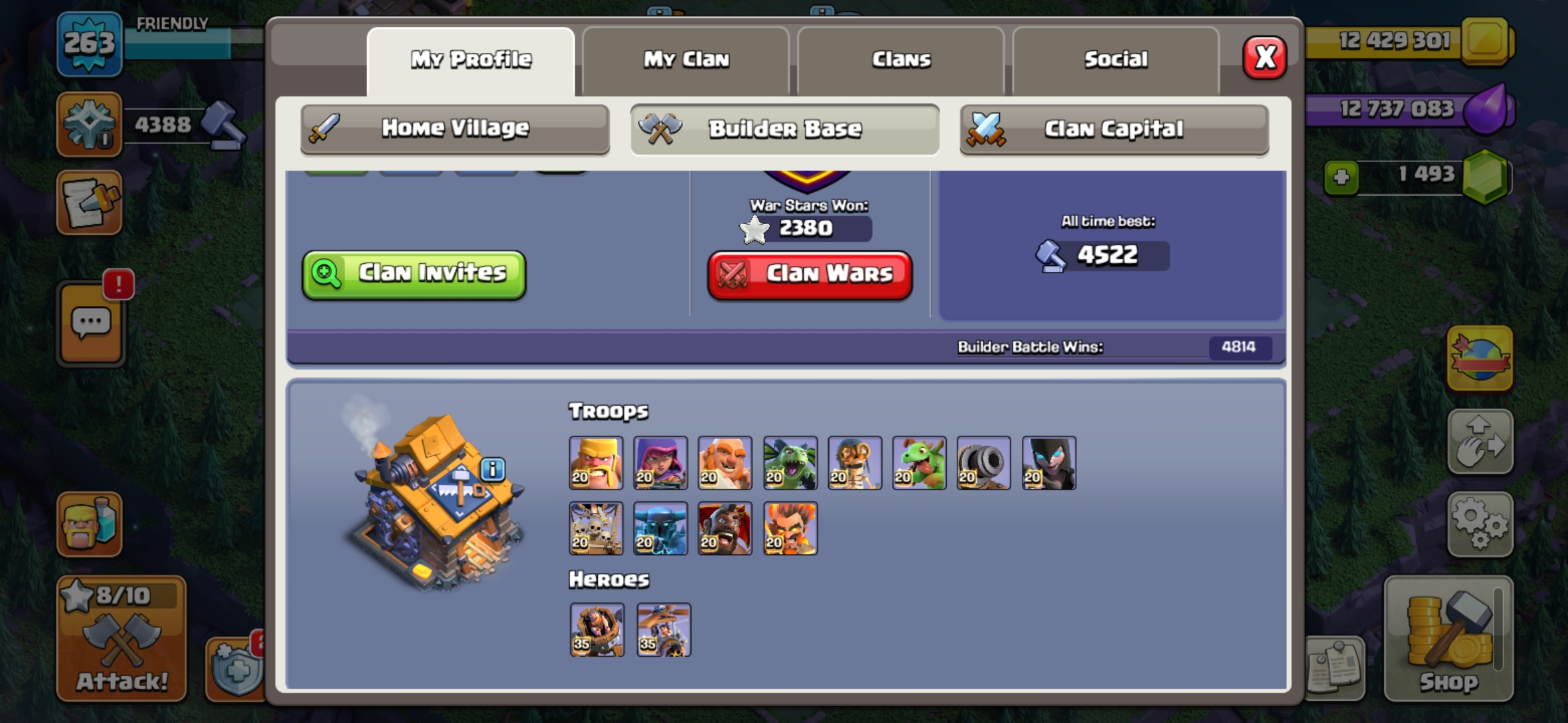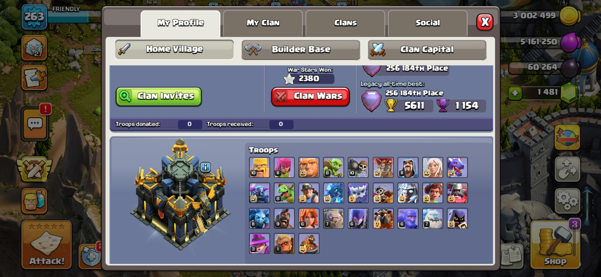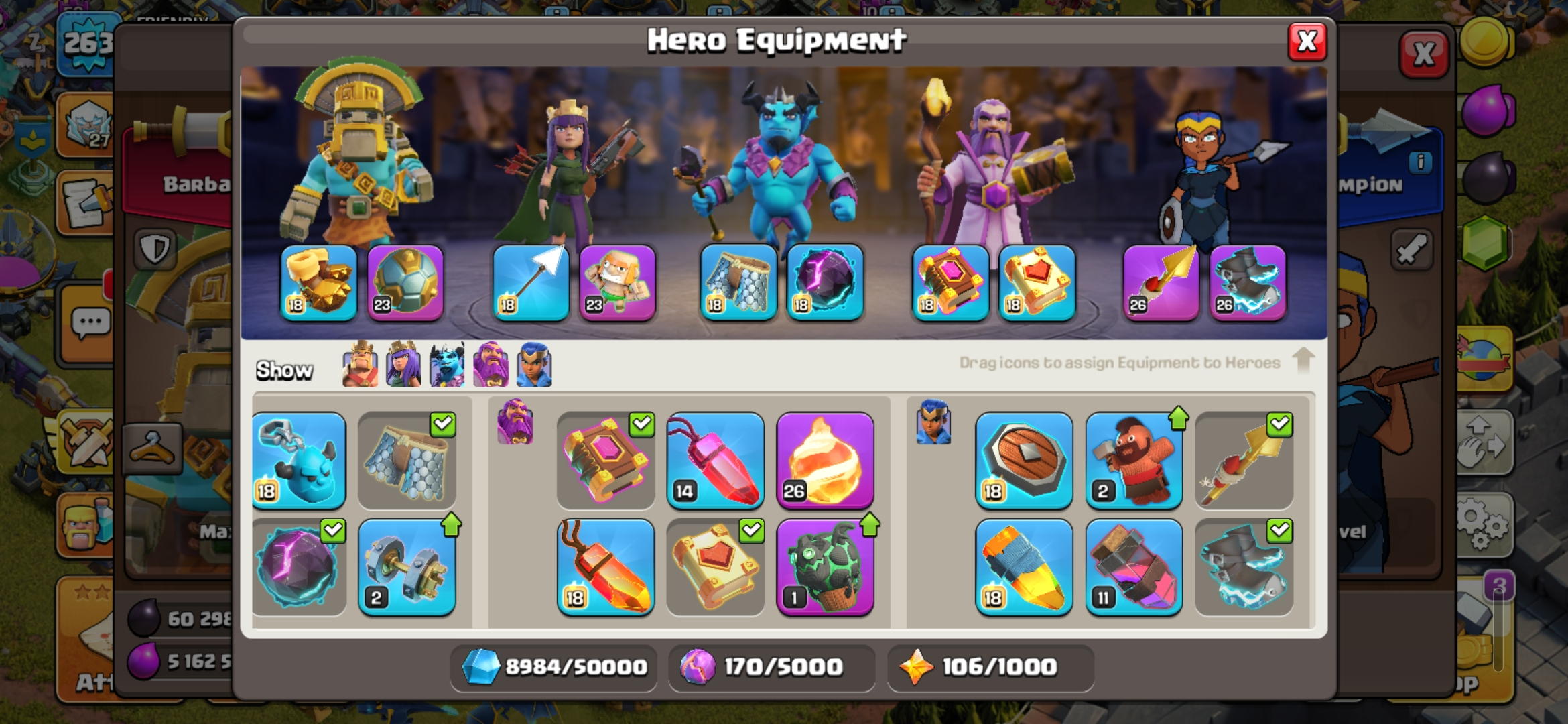 TH 17 | 263 Xp | Lvl 100 | 100 | 85 | 75 | 50 | War Stars | Good Equipments | Awesome Scenaries | 1k+ Gems | Rename Available | Safe Account | Email Changeable | Instant Delivery #mn