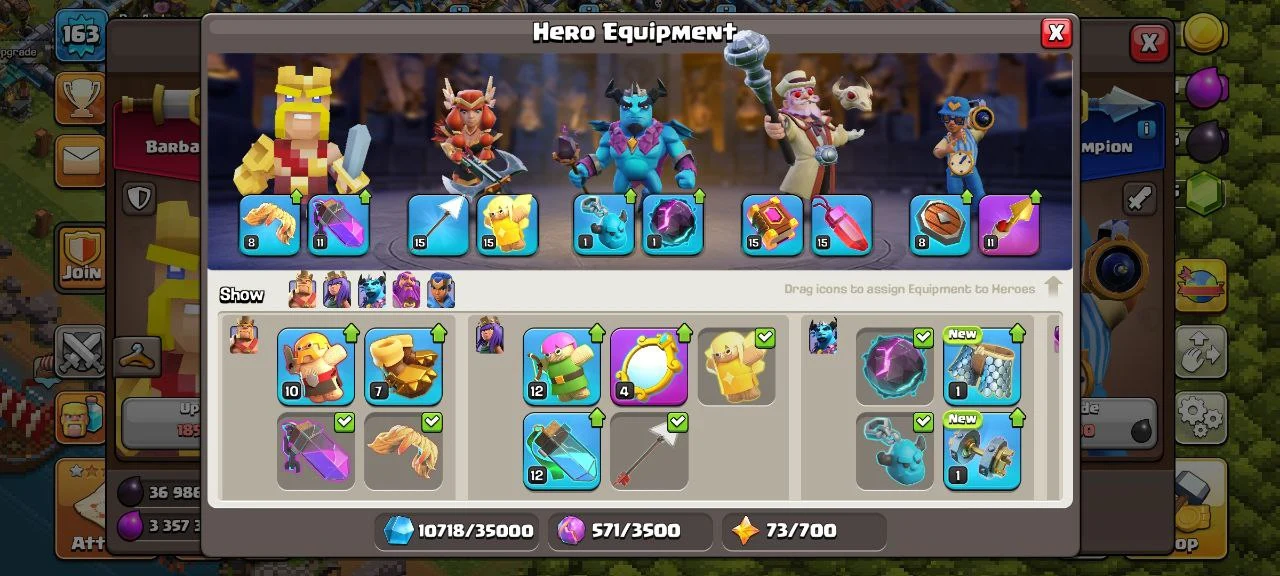 🔥 TH13 MAX HERO ACCOUNT 💠 XP 163 💥 | B.K75-AQ75-MP44-GW50-RC25 ⚔️ | 6 OP SKINS 🎨 PARTY CHAMPION, WILD WEST WARDEN, SUMMER QUEEN, PIXEL KING 👑 | BH9 ❤️ | MAGIC ITEMS 💥 | INSTANT DELIVERY 🚚