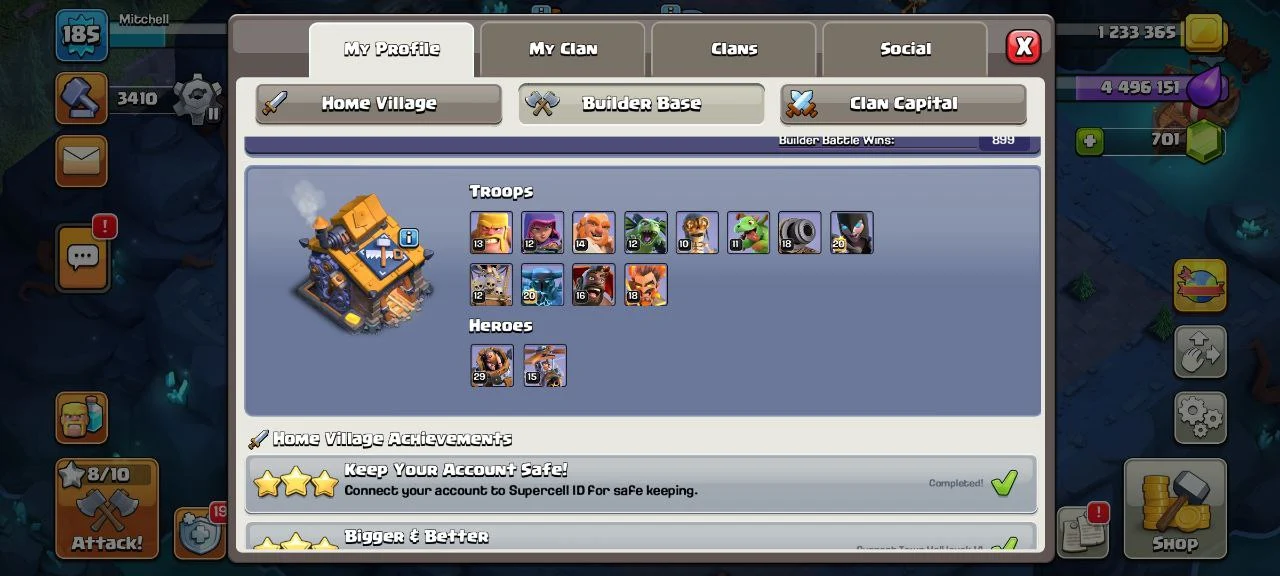 🔥 TH14 US ACCOUNT 💠 XP 185 💥 | 6 OP HERO SKINS 🎭 | B.K56-AQ56-MP40-GW41-RC20 ⚔️ | BH10 ❤️ | 1018 CWL MEDALS 🏆 | GOOD EQUIPMENTS ⚙️ | MAGIC ITEMS 💥 | INSTANT DELIVERY 🚚