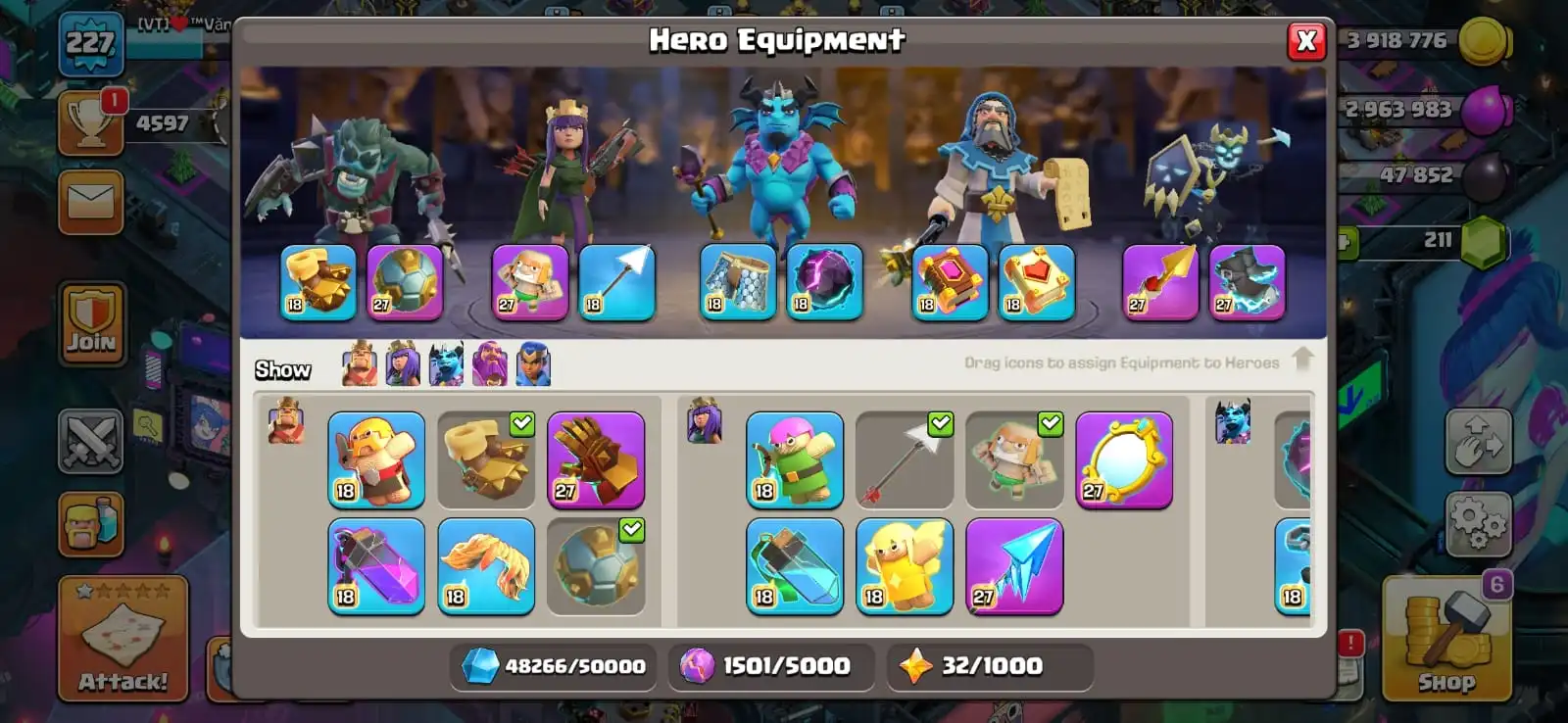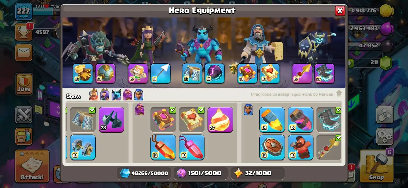 Th17 [Supercharger Almost Max] | [5-Hero Max] | 8-Epic Max-1-23 Lvl Equipment | XP-227 | NC-Yes | BEST-DEAL