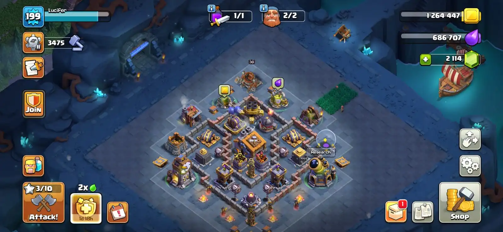 🛍️ TH18 [Nearest Maxed+Premium Base] || ⭐ Heroes-68/62/44/28/40/03 || 🔥 Nearest Maxed Walls, Maxed Hero Equiqments, Old Decorations || 🚀 Legendary Hero Skins, Decent Base || 👨🏻💻 Android/IOS Ready ||