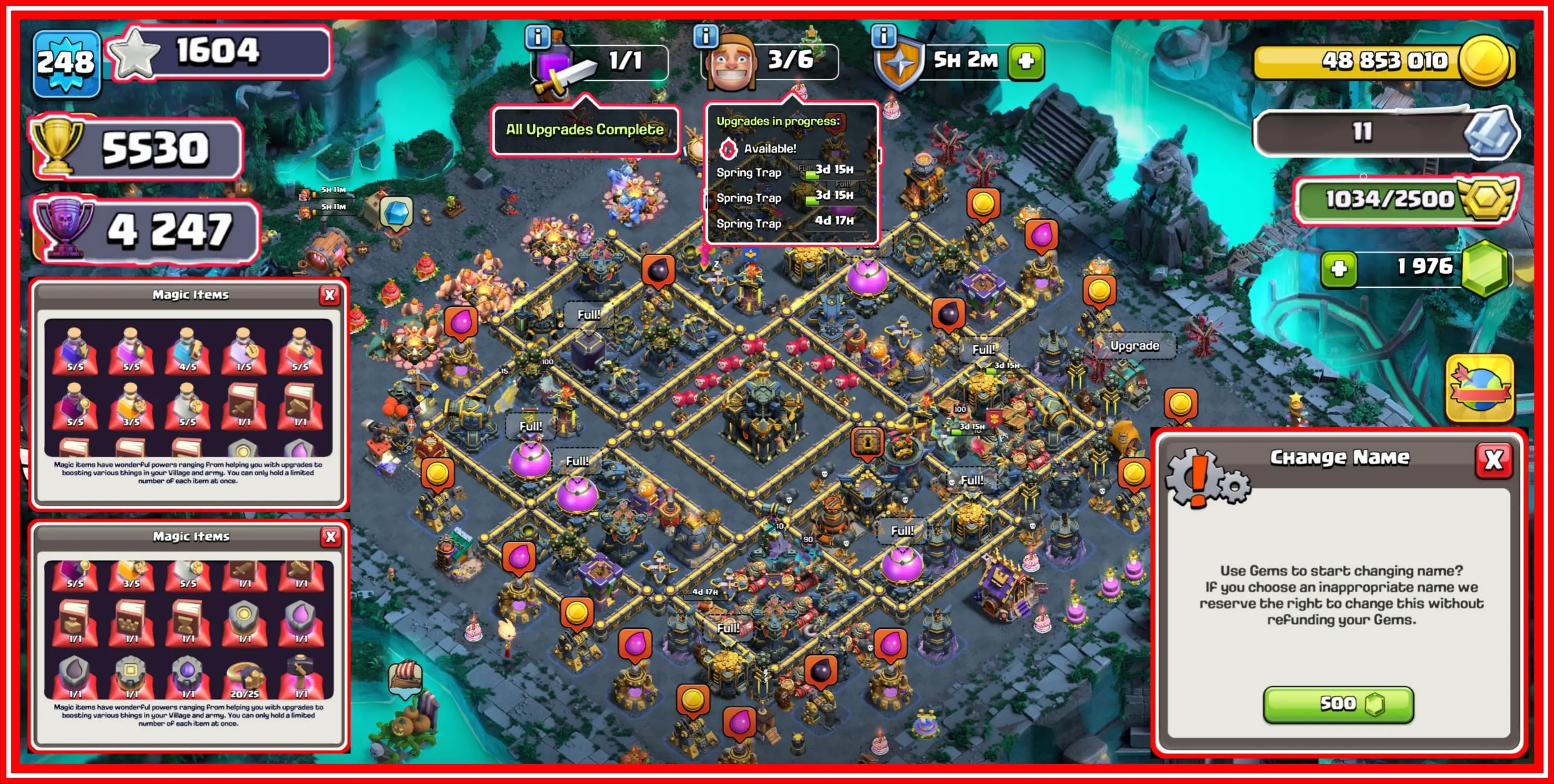 🔥 USA LOCAL 💥 TH17 Craziest & Rarest Ever 👑🦸♂️ 45+ Skins & 5 Scenaries 💪 29 Max Equipments – 9 Epic Max 💯 Fully Maxed Out [ 3 Trap Left] 🔥 Full Stacked Base 💻 Android / iOS