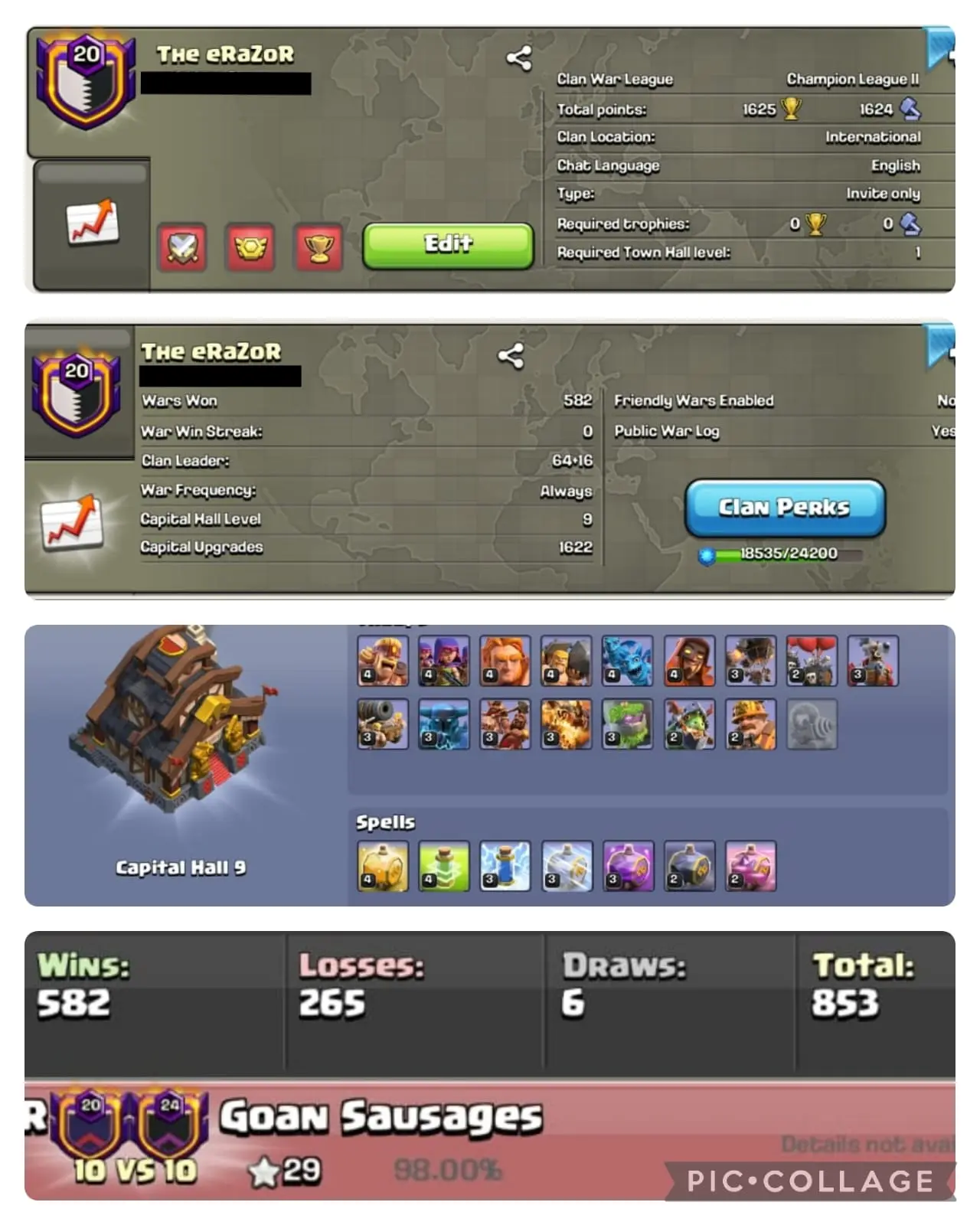 🔥[CHAMP 2🏆]🔥NAME- THE eRaZoR | LVL - 20🥵| 💥WARLOG W/L/D:582/265/6 | CWL League: CHAMP 2🏆| CC: ALMOST 10 !!💥