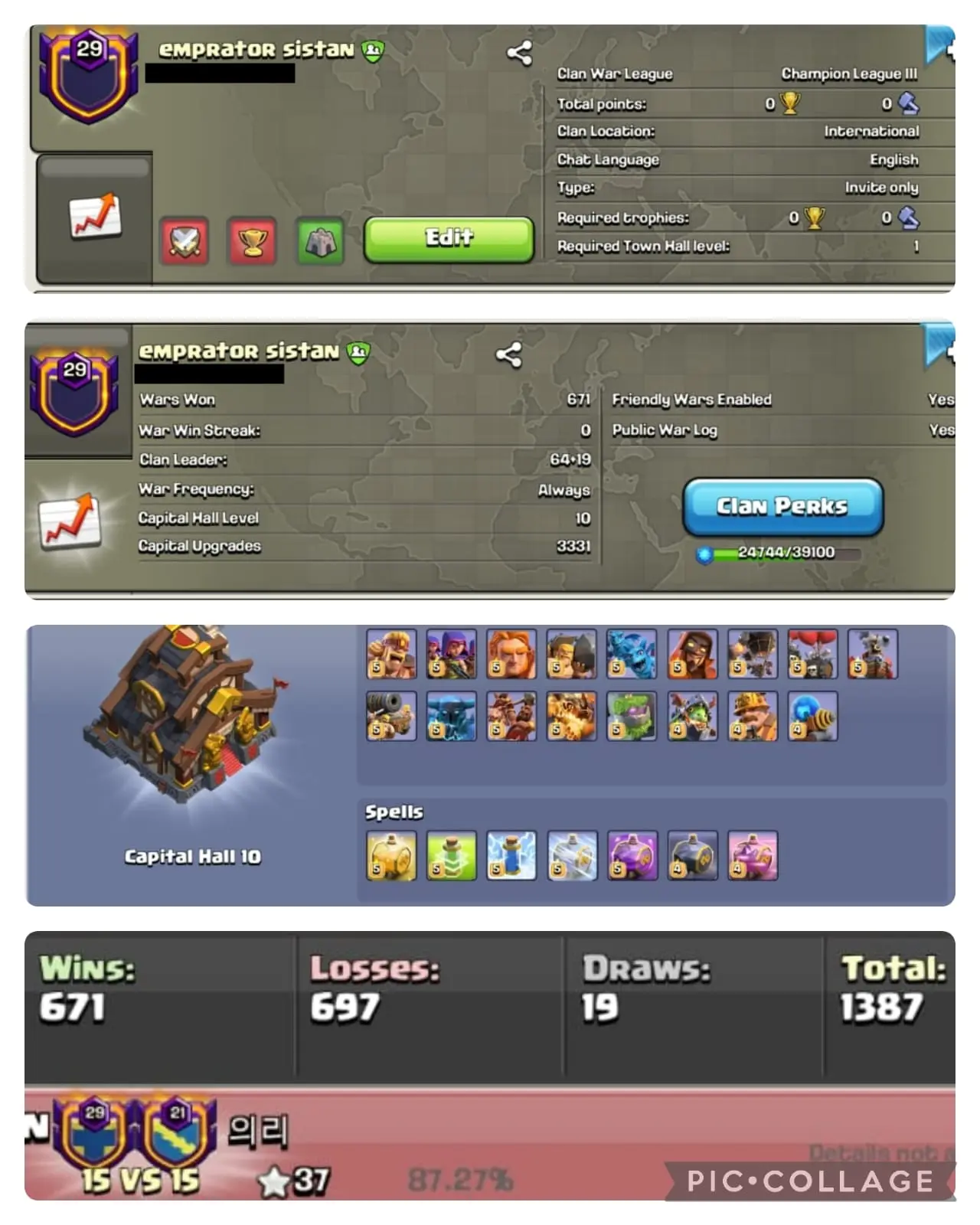 💥[CHAMP 3]🔥NAME- emprator sistan | LVL 29.5🥵| 💥WARLOG W/L/D:671/697/19 | CWL League: CHAMP 3🏆| CC: MAX 10 !!💥