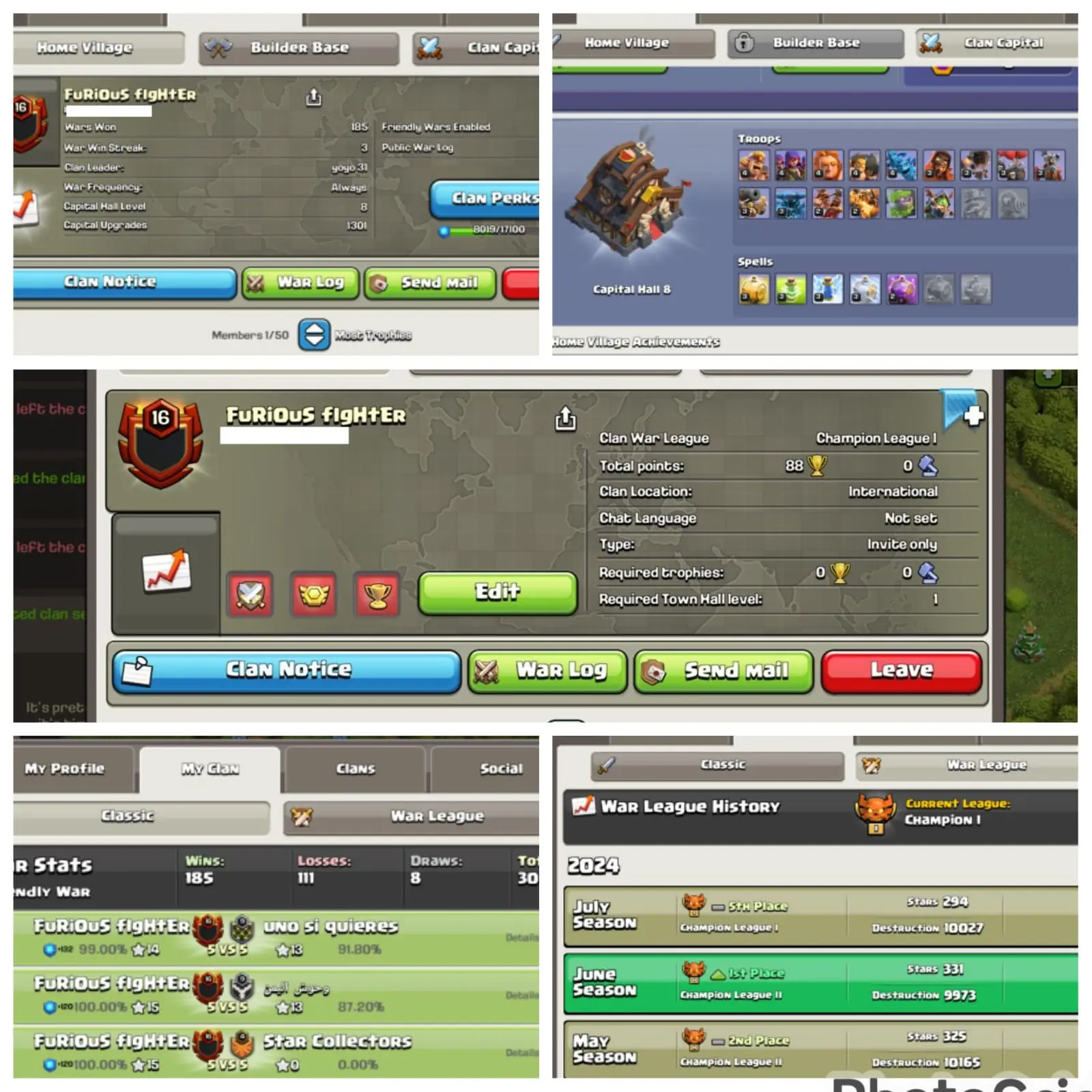 🔥CHAMPION 1 LEAGUE CLAN💀💥NAME- Furious Fighter | 💥LVL- 16.5 |☠️ WARLOG W-L-D: 185-111-8 | CWL LEAGUE : CHAMPION 1🏆 ☠️| CC: ALMOST 9 !!⚡⚡