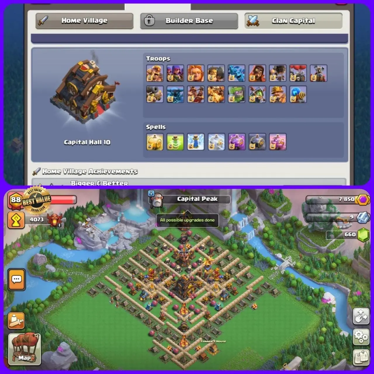 Assassin's !! LEVEL 20 !! CAPITAL PEAK 10 ( MAX TROOPS ) !! WIN 143 LOSS 124 !! CRYSTAL LEAUGE 2 !! PERFECT NAME !! AFFORDABLE !! FAST DELIVERY