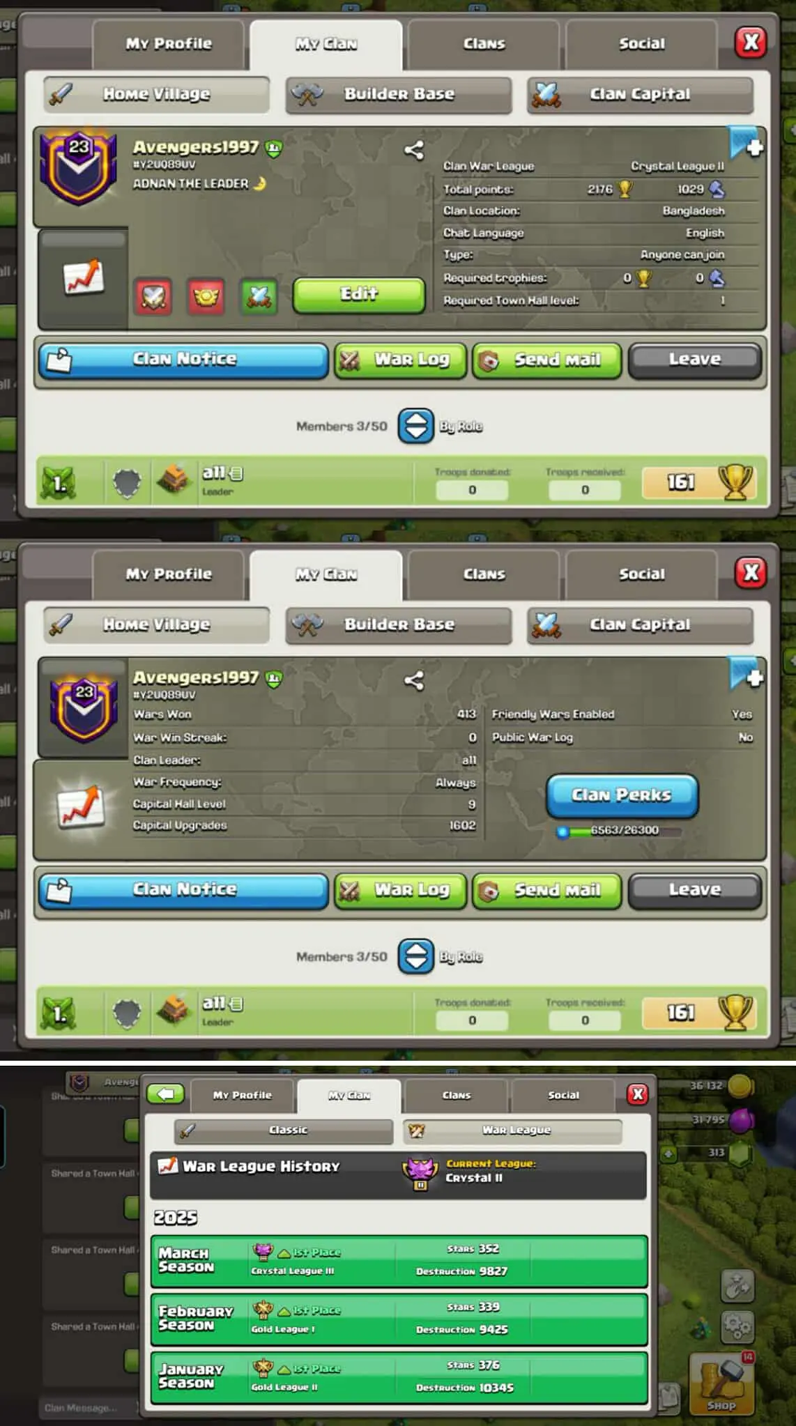 Clan Level 23 | Name: Avengers1997 | Most Rare Name | Crystal League 2 || Capital Hall Level 9 Max || Good War Log 65$