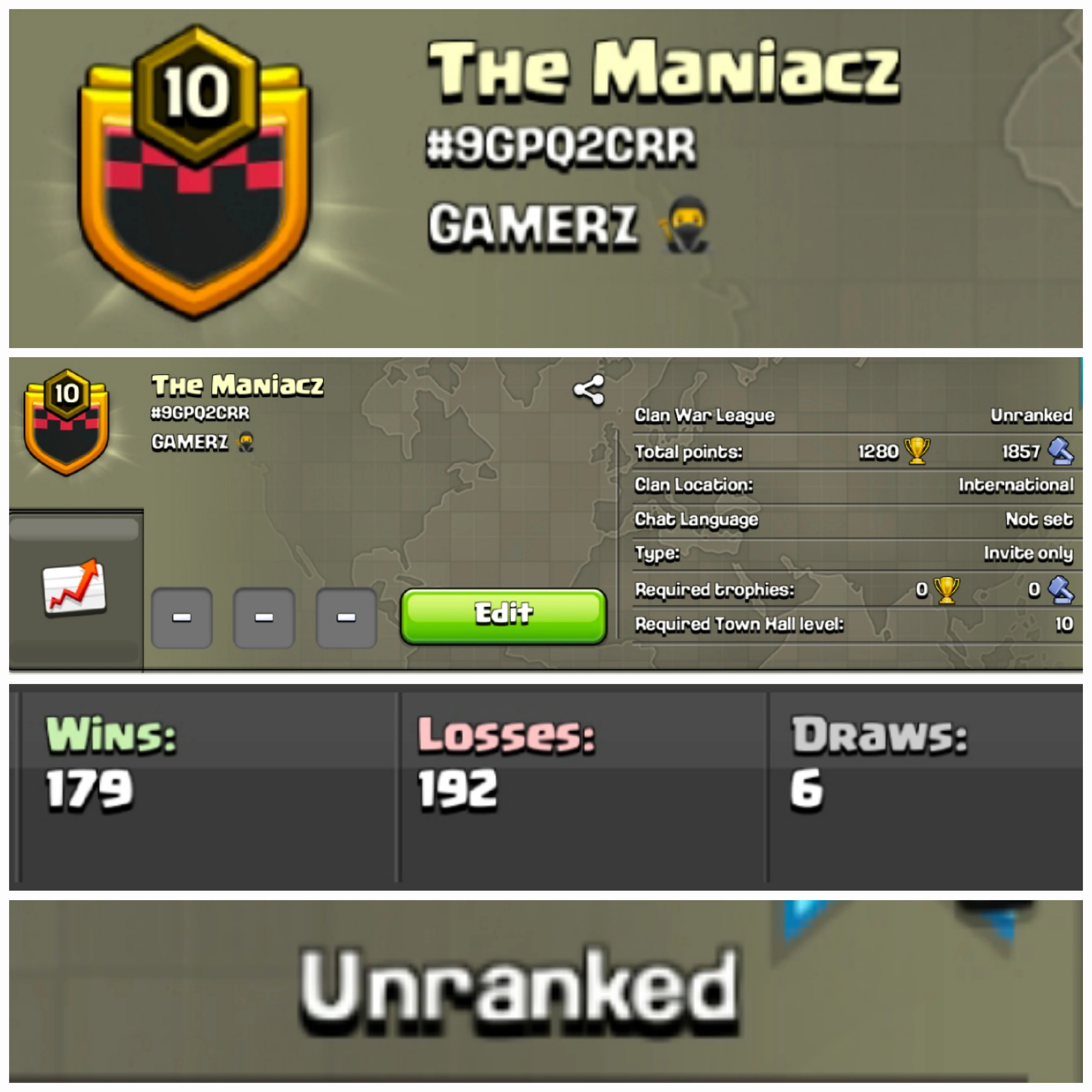 The Maniacz !! LEVEL 10 !! UNRANKED !! WIN 179 LOSS 192 !! BEST NAME !! AFFORDABLE !! INSTANT DELIVERY