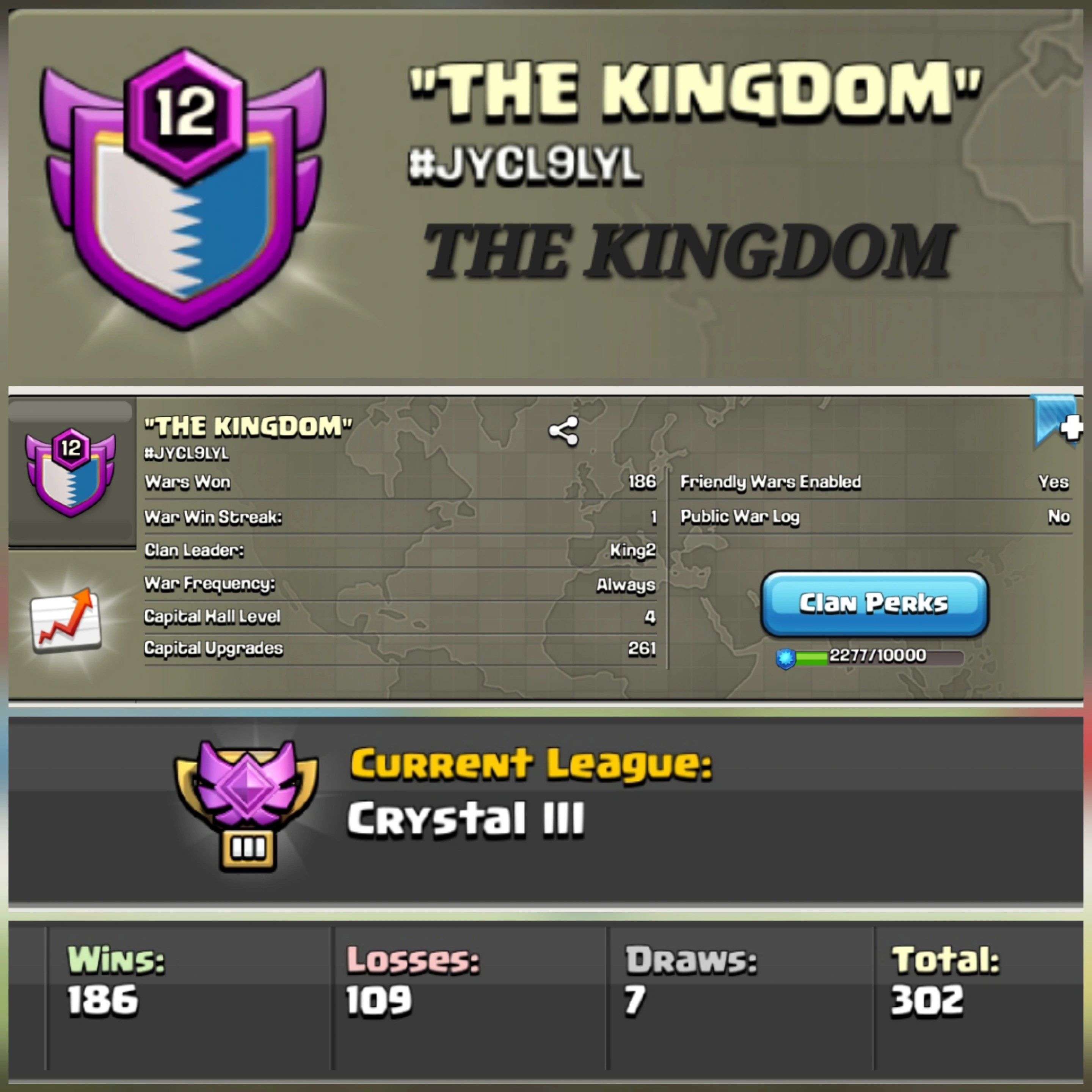THE KINGDOM !! LEVEL 12 !! WIN 186 LOSS 109 !! CRYSTAL LEAUGE !! PERFECT NAME !! POSITIVE LOG !! AFFORDABLE !! FAST DELIVERY