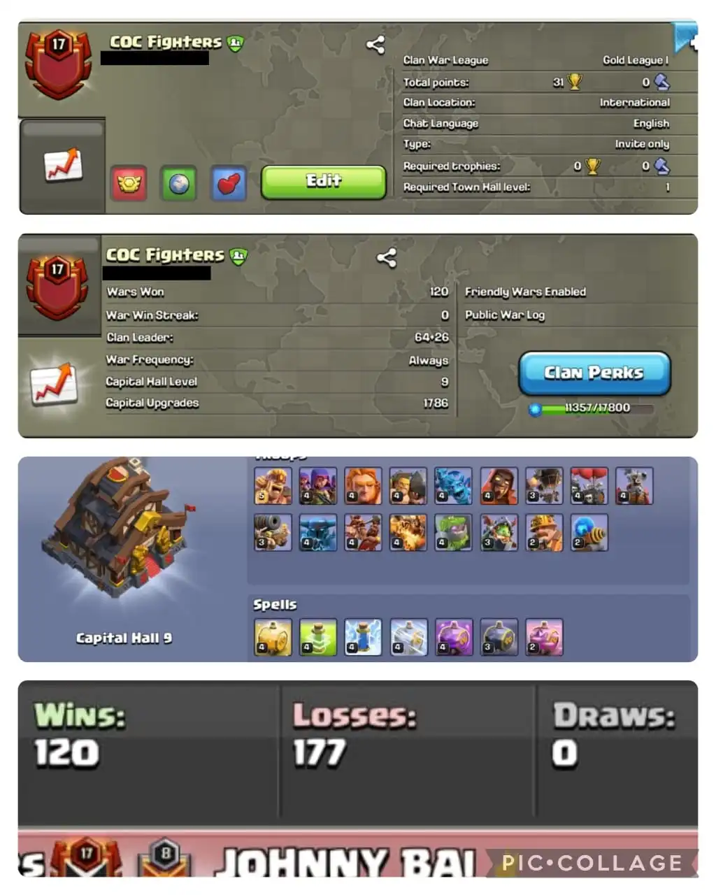 🔥NAME- COC Fighters | 💥LVL- 17 |☠️ WARLOG W-L-D: 120-177-0 | CWL LEAGUE : GOLD 1🏆 | CC: NEAR 10!!⚡⚡