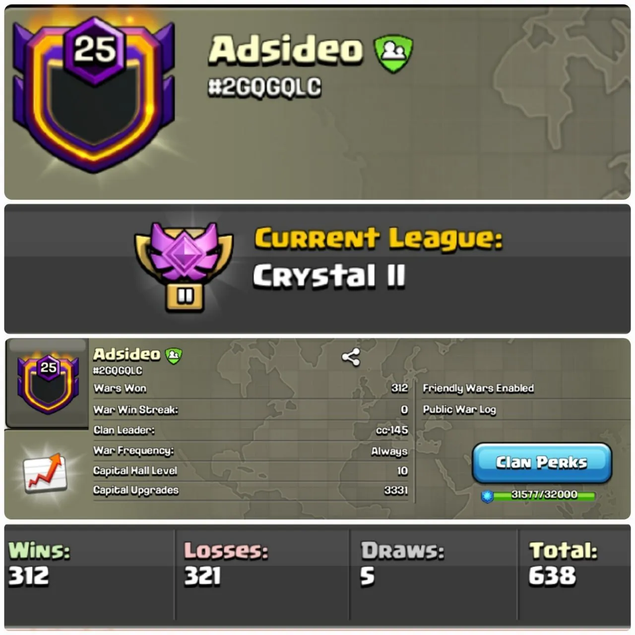 🍁LEVEL 25🍁 ADSIDEO 💥 Crystal II ⭐ Capital Hall-10 ⭐ WARLOG- 312💓 CHEAP & SAFE🩷