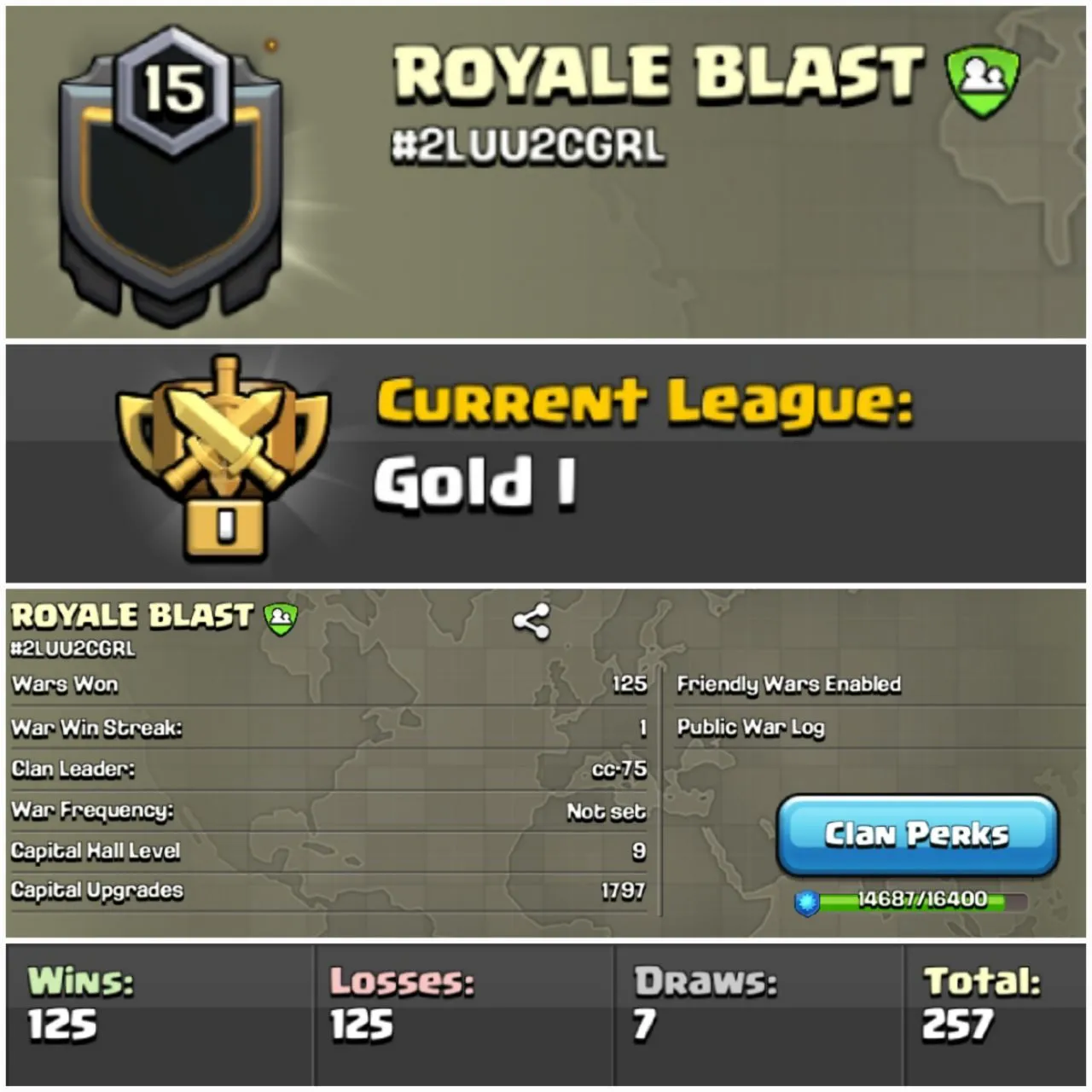 🍁LEVEL 15🍁 ROYALE BLAST 💥 Gold I ⭐ Capital Hall-9 ⭐ WARLOG- 125💓 CHEAP & SAFE🩷