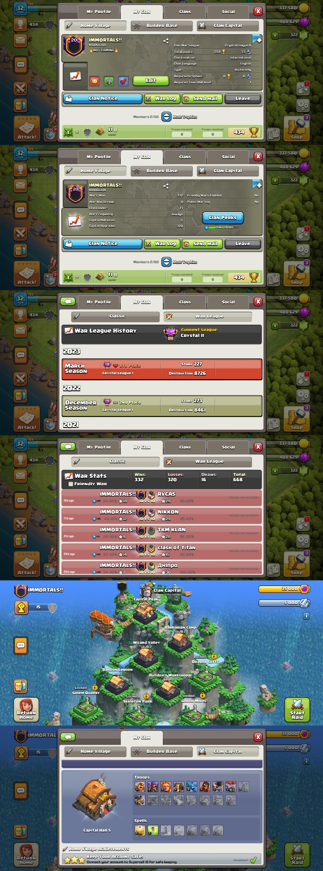 Rare Clan Name ➤【Name: IMMORTALS】➤ Same Clan & Instant Delivery➤Level-20➤Crystal-II➤Pure English Name➤Capital-5➤Good War Log🟥Nego Possible