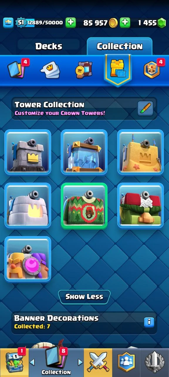 🌟 11 MAX CARDS 💥 | 7640 TROPHIES 🏆 | 113 CARDS 🚀 | LEVEL 51 🎊 | 43 EMOTES 🎊 | 7 TOWER SKINS 🎉 | SHARK TANK TOWER 🦈 GRASS EATING LAMA | KT14 💎 | 9 YEARS BADGE ☠️ | TH12 ACCOUNT ATTACHED