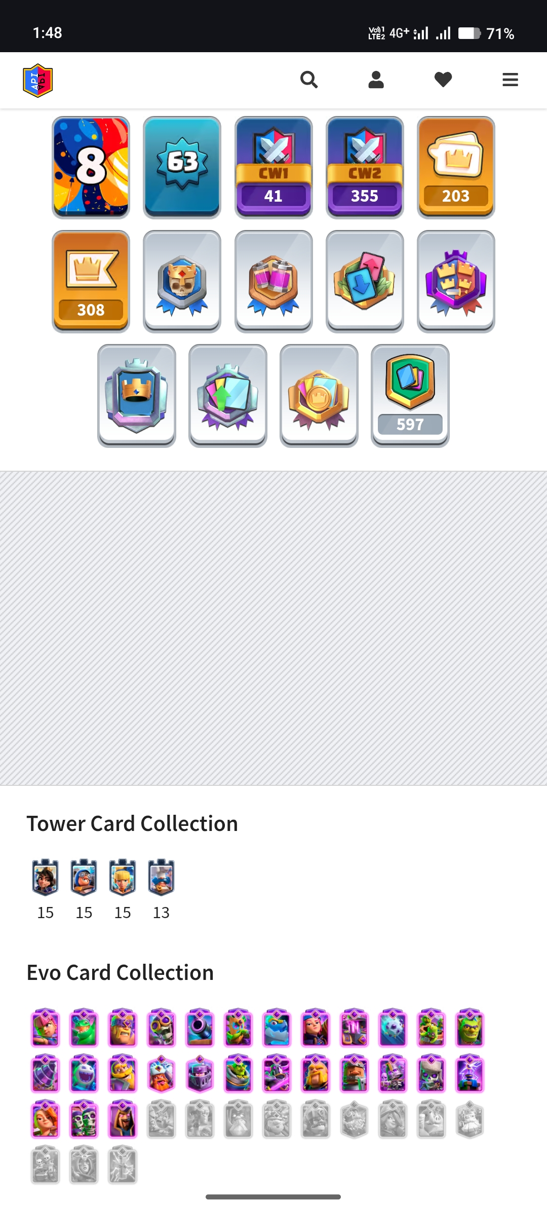 12000 Cups | 🏆 Lvl 63 , KT 15 ✅ 27 Evolutions ❗| 40 Elite Cards |🚀 103 Maxed Cards |❗ Rarest Emotes ⸱ 203 Total 🚀 Safe Account 🔥 Email Changeable 💪🏻 8 Year Old acc 🤠 Instant