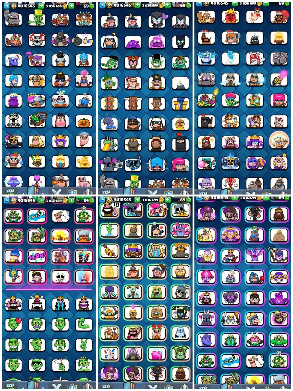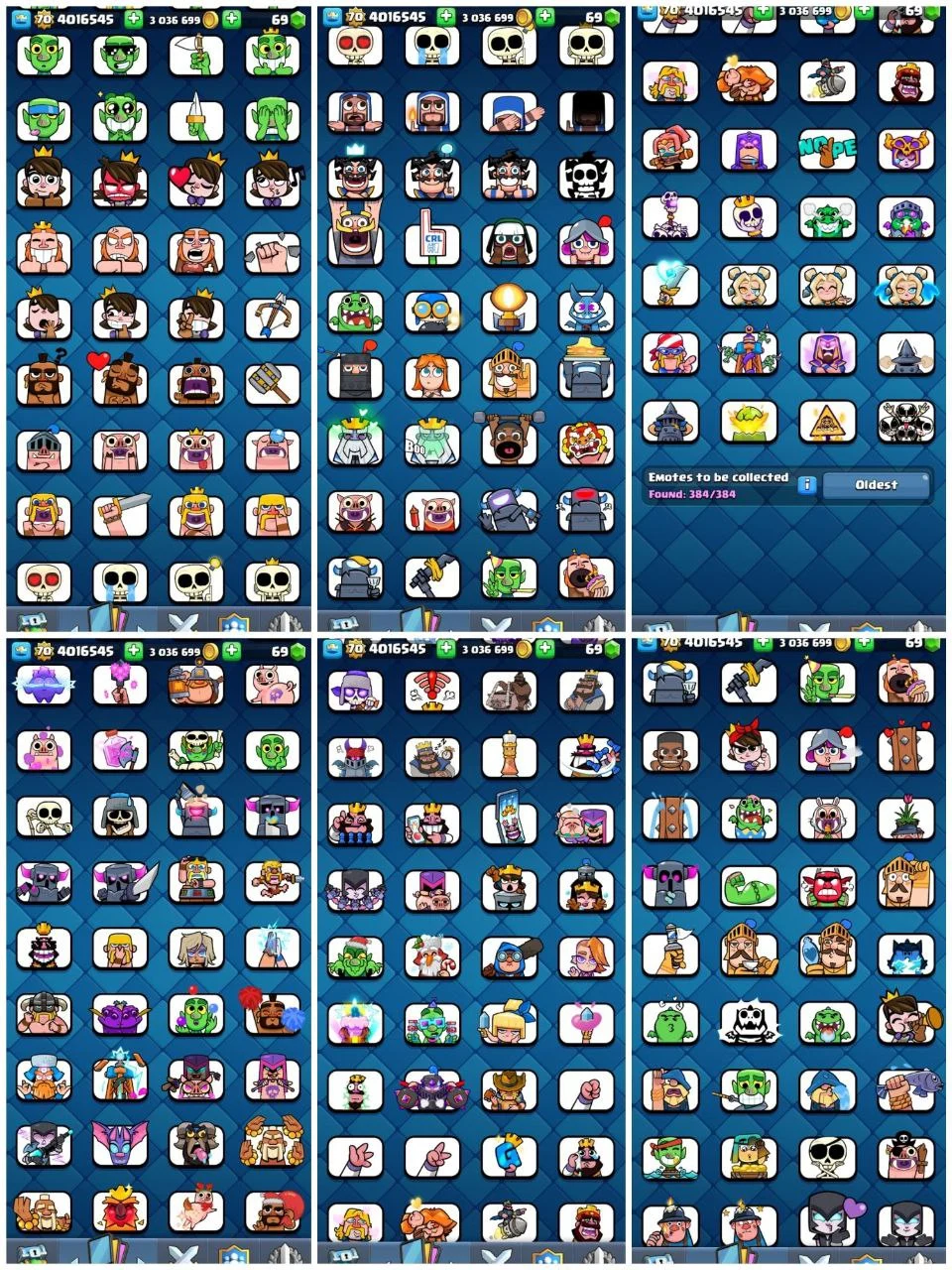 ✨️ 384/384 EMOTES 💎 MAXED OUT 70 XP 👑 22 EVOLUTIONS 😈 94 ELITE CARDS 🎯 S1 FLIGHTING FISH 🤯 55x TOWER SKINS 🌟 LEGENDARY CRYING GHOST 🏅 ULTIMATE CHAMPION 🔥 EMPEROR KING 🏆 ANIVERSARY HEALER 💰 COCONUT PEKKA 🎈 YEAR 2020 SPECS BOMBER EMOTE ✨️ 13500 TROPHIES ✅