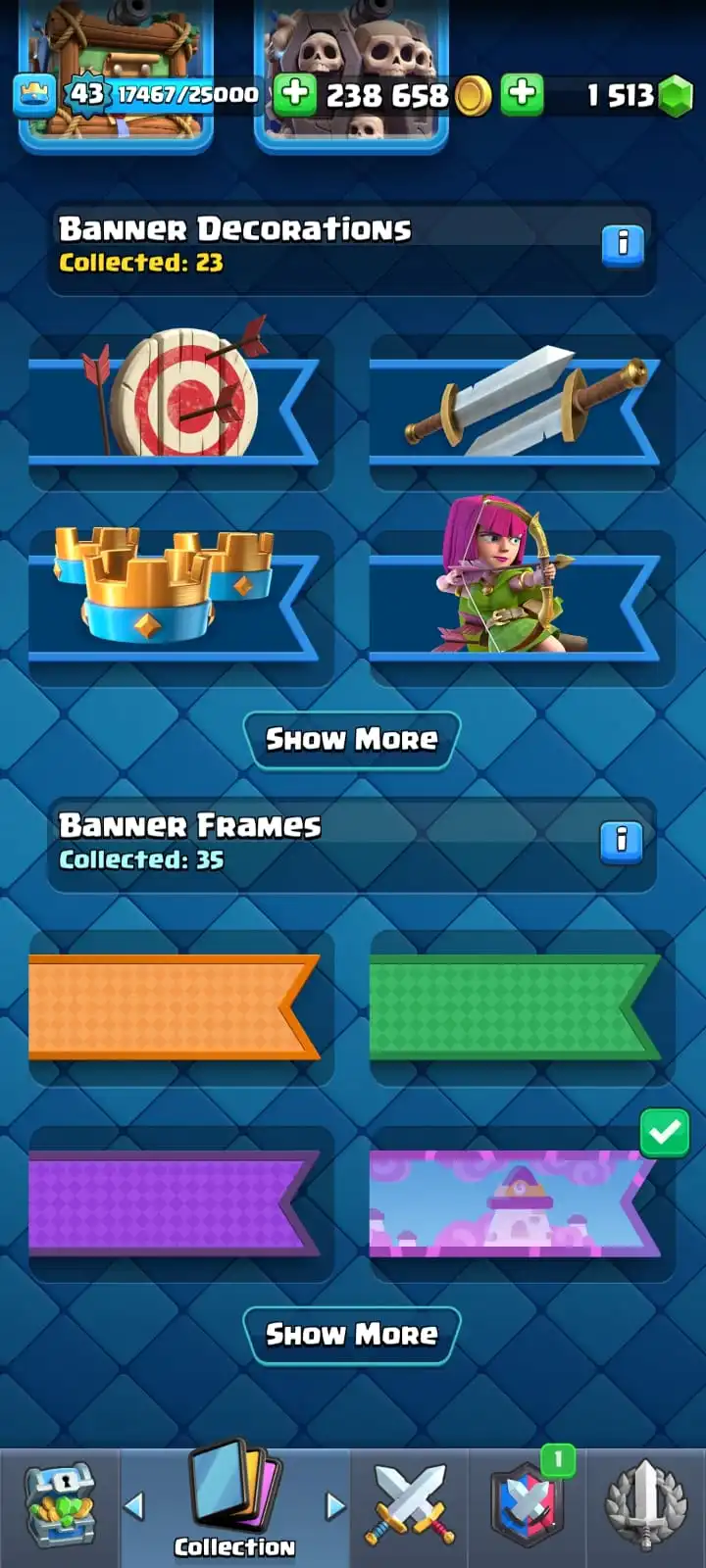 🎯 5 YR OLD CR 9060 CUPS | 💎 8 MAX CARDS | 🏆 1 ELITE | ⚡ 6 EVO | 🎭 40 EMOTES | 🏰 5 TOWER SKIN | 🎖️ 38 BADGES | 🎨 23 DECORATION | 🧱 35 FRAMES | 🔥 KT 14 | 🏟️ ARENA 23 | 🚀 LEVEL 43 💥