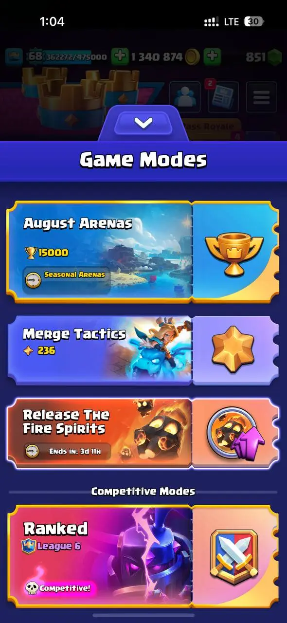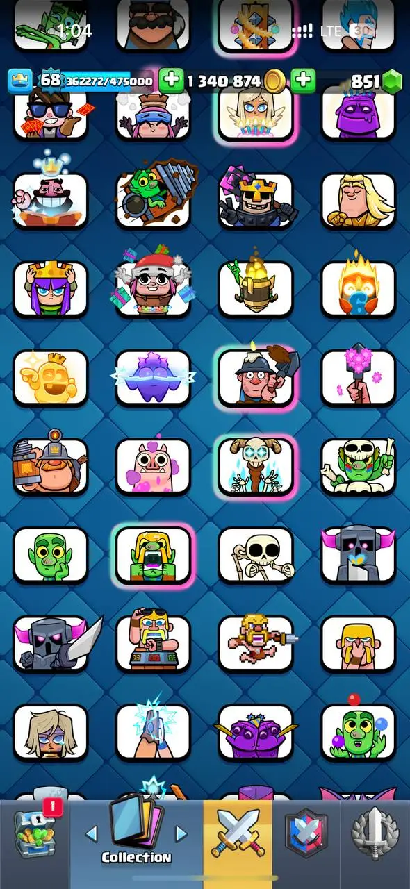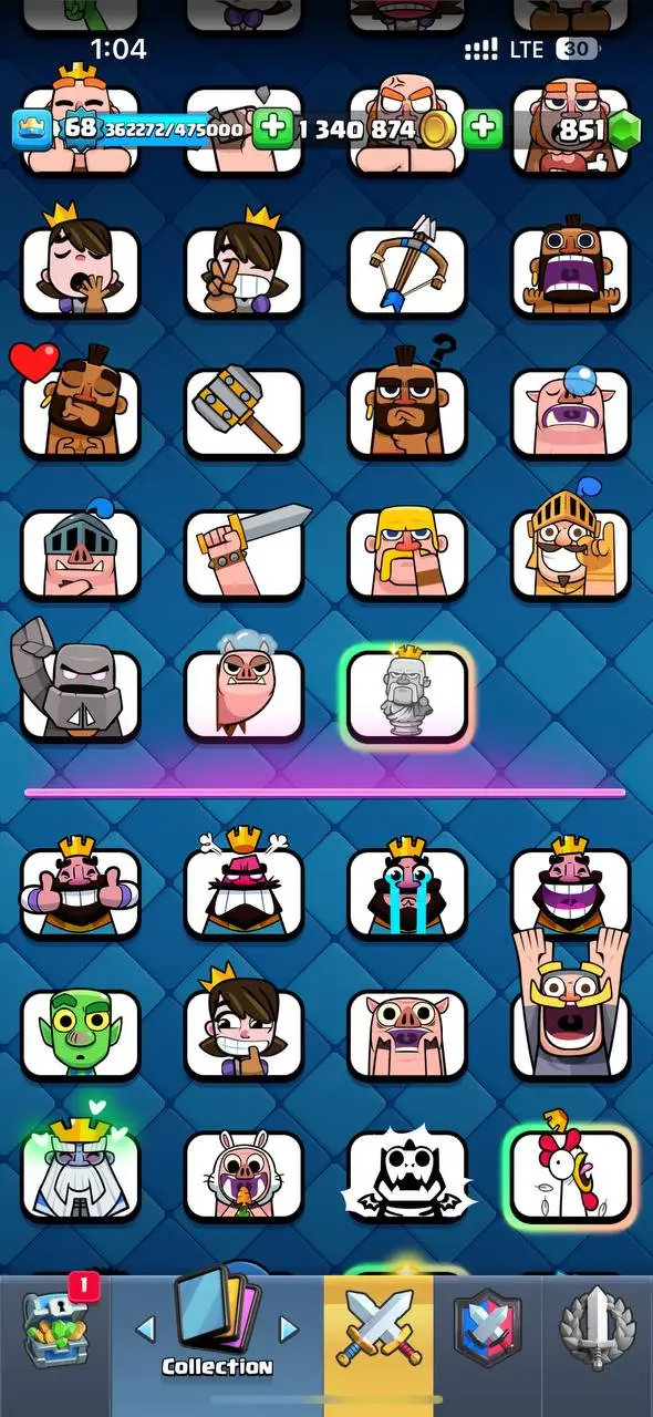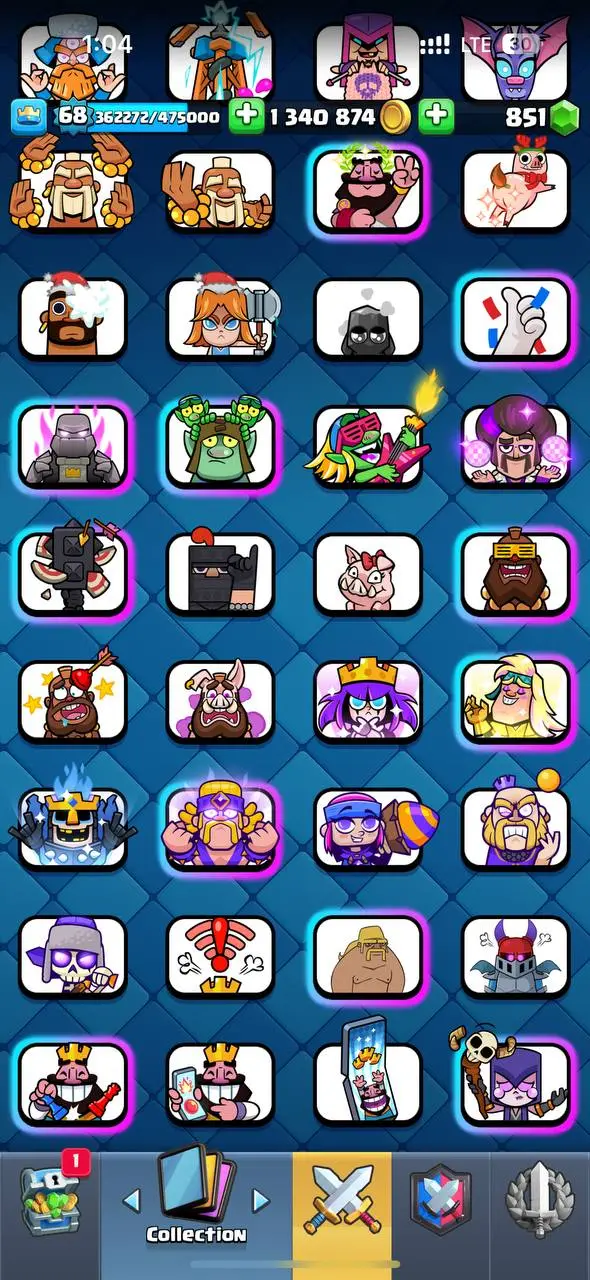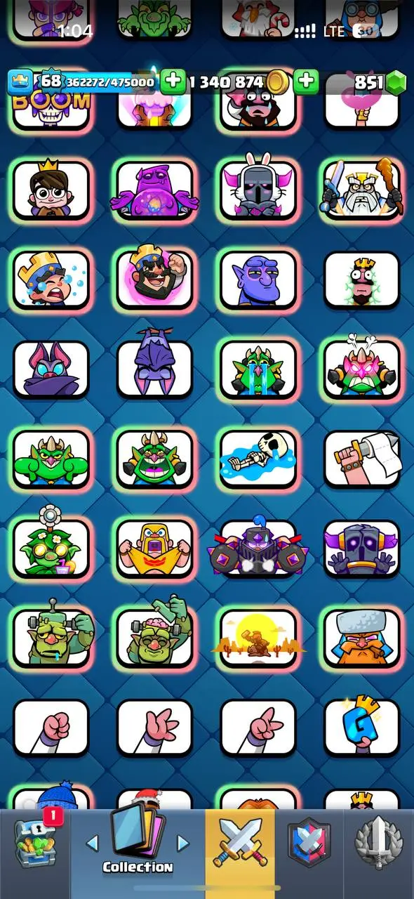 🤯 69 XP 😨 120 CARDS MAX(80 ELITE) 🤩 22 EVOLUTION 🫠 CHANGE NAME FREE 😶🌫️ 15000 TROPHIES 🏆 200 RARE EMOTE 🫡 INSTANT DELIVERY 🚚
