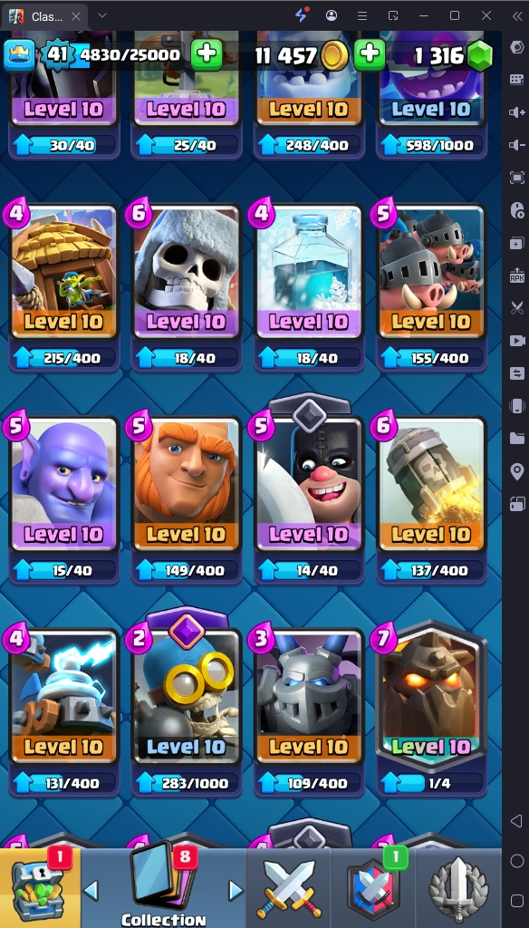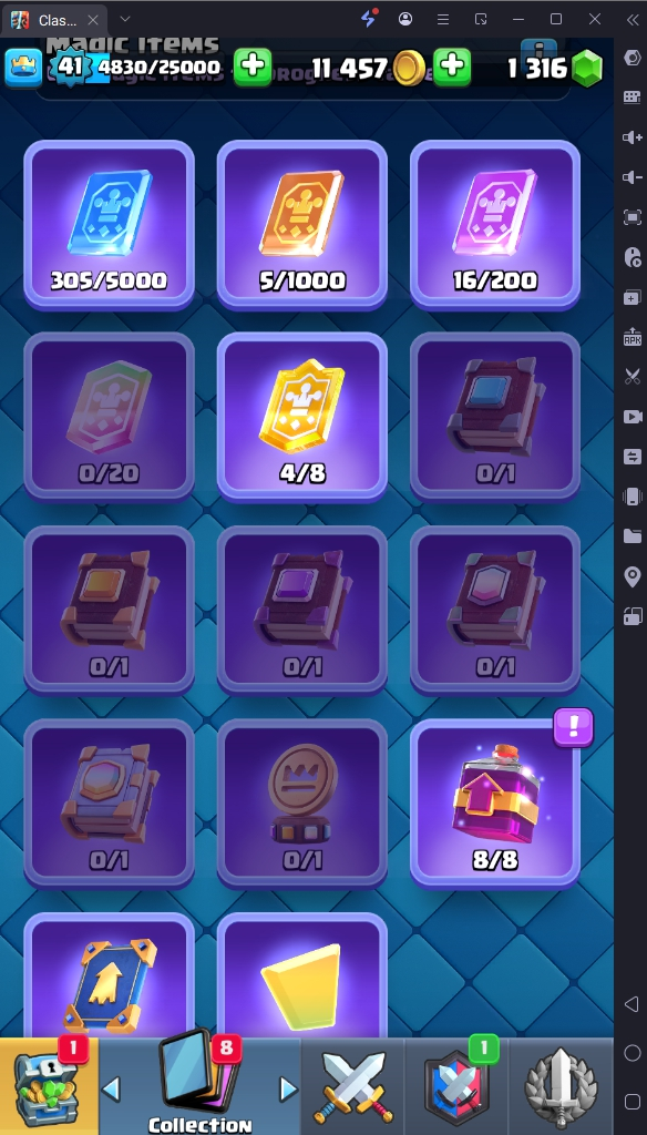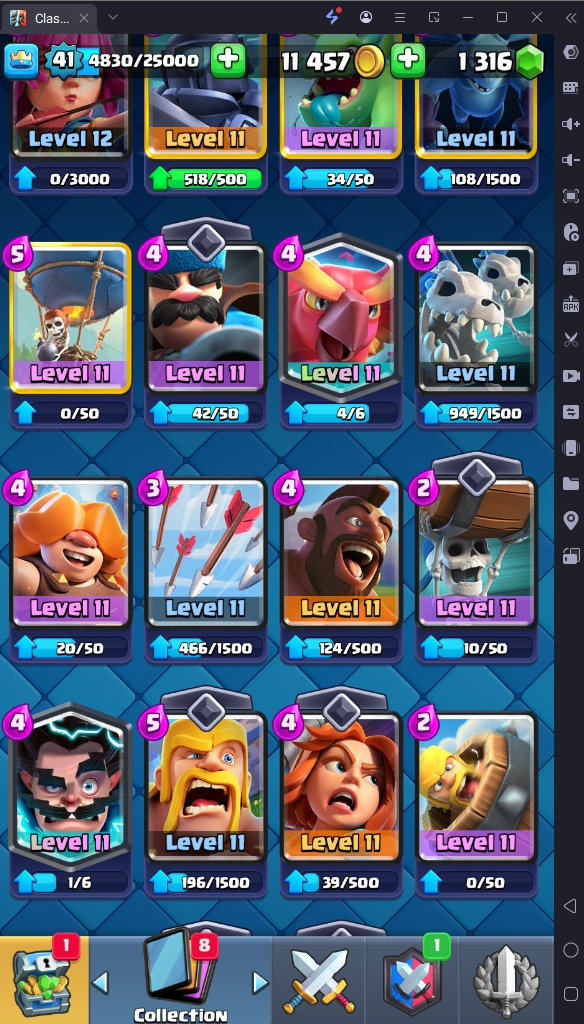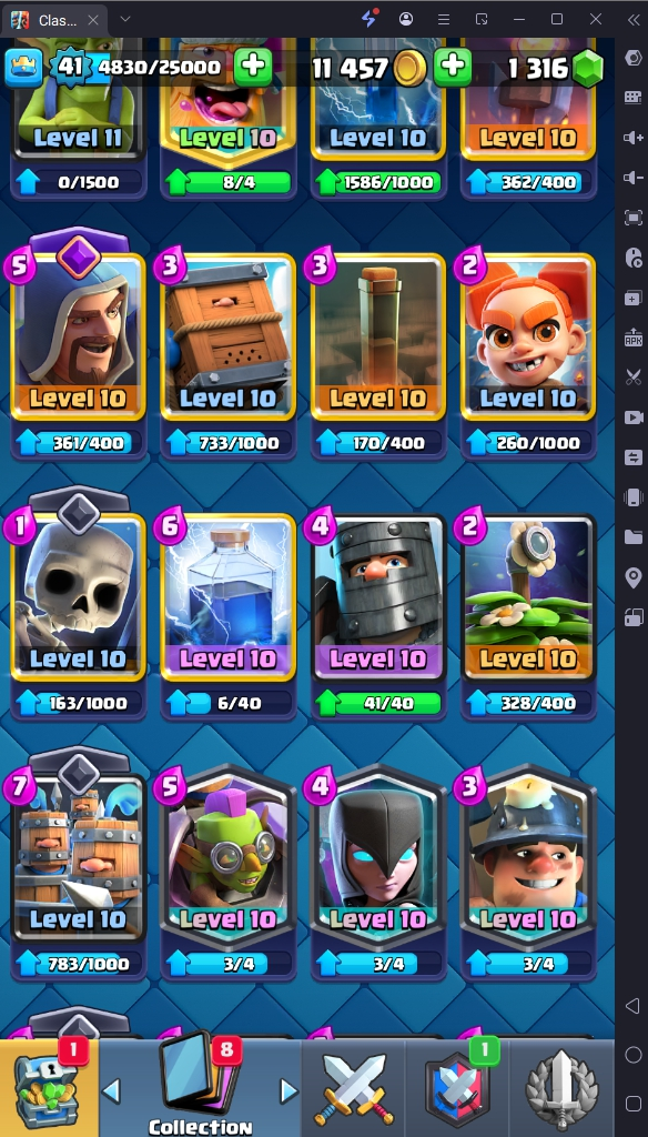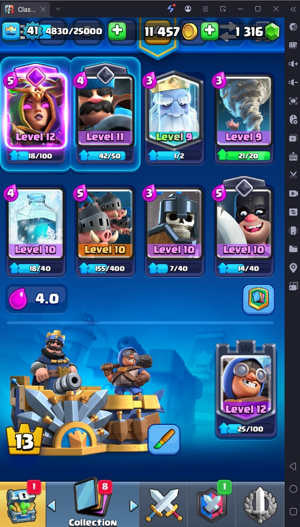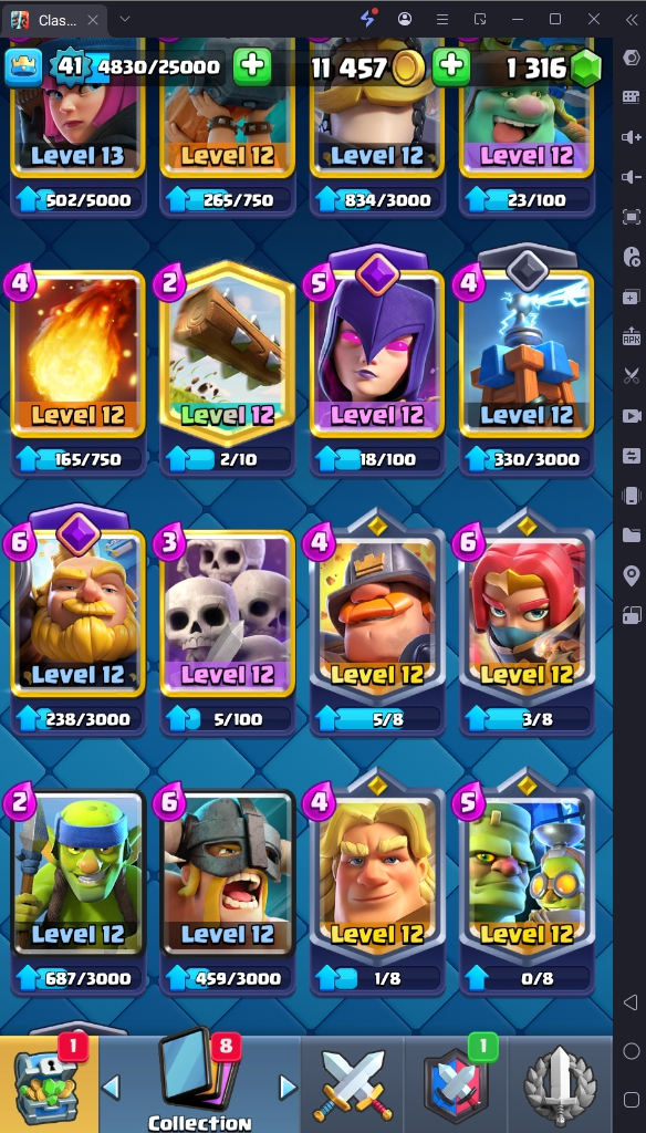 7686 TROPHY 🏆 41 LVL 💯 KT 13 👑 116 CARDS ♦️ 3 MAX CARDS 👑 1 ELITE CARDS 🔮 8 EVO 💯 EMOTE 24 🎭 #CR8J22VCU ⸱ TAG ACCOUNT ♥️