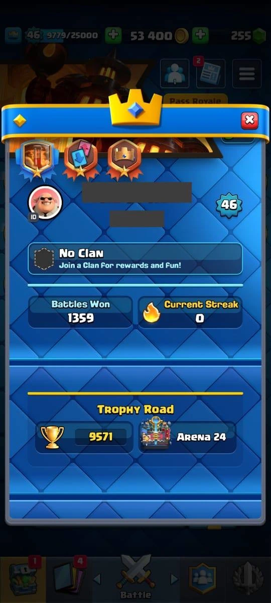 9 571 Trophies | XP Lvl 46❗️| 11 MAXED CARDS❗️| 2 ELITE LEVEL CARD ❤️🔥| 11 EVOLUTIONS📈 | 40 EMOTES | 100% safe account | instant delivery