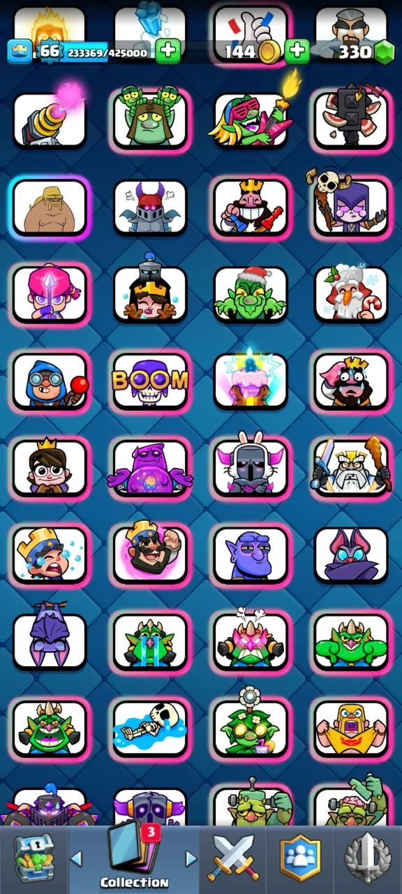 ✨️ CHEAPEST 💎 110 CARDS MAXED 👑 ALL 16 EVOLVED 😈 66 XP 🎯 EMPEROR KING 🤯 10 TOWER SKINS 🌟 EVO BARB EMOTE 🏅 60 ELITE 💰 GOLDEN KNIGHT EMOTE 👑 LAUGHING HOG 🎈CLASHMAS LOG✨️ 9269 TROPHIES ✅