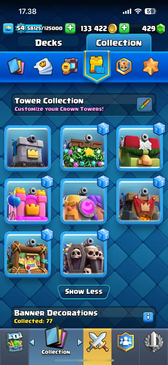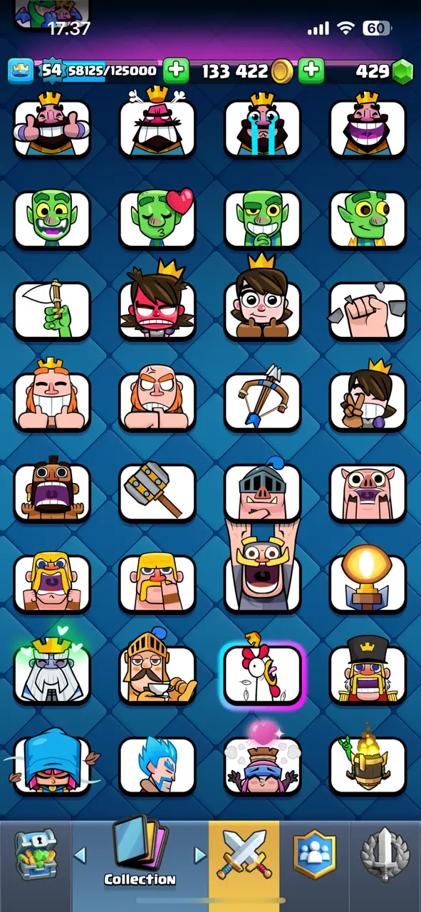 🔥 CHEAPEST 🔥 CR Lv.54 🔥 Free Change Name 🔥 Arena 23 🔥 9382 Trophies 🔥 KT 15 🔥 15 Evo Cards 🔥 14 Max Cards & 9 Elites 🔥 82 Emotes 🔥 8 Tower Skins 🔥 [F2644] 🔥
