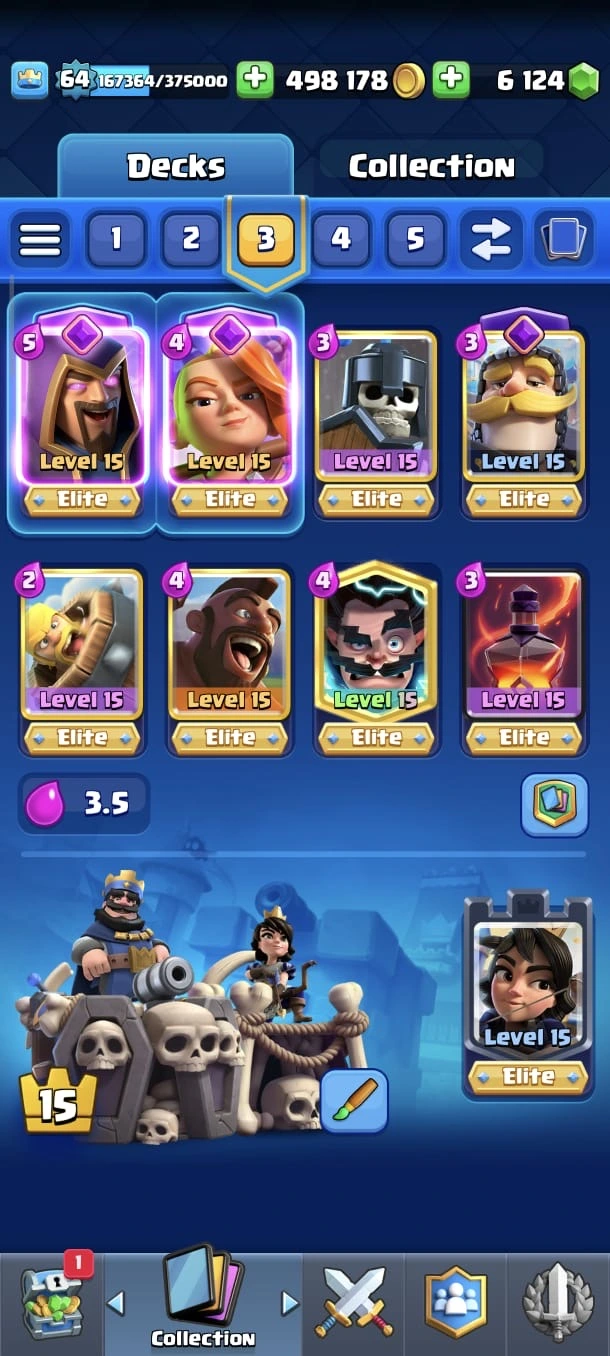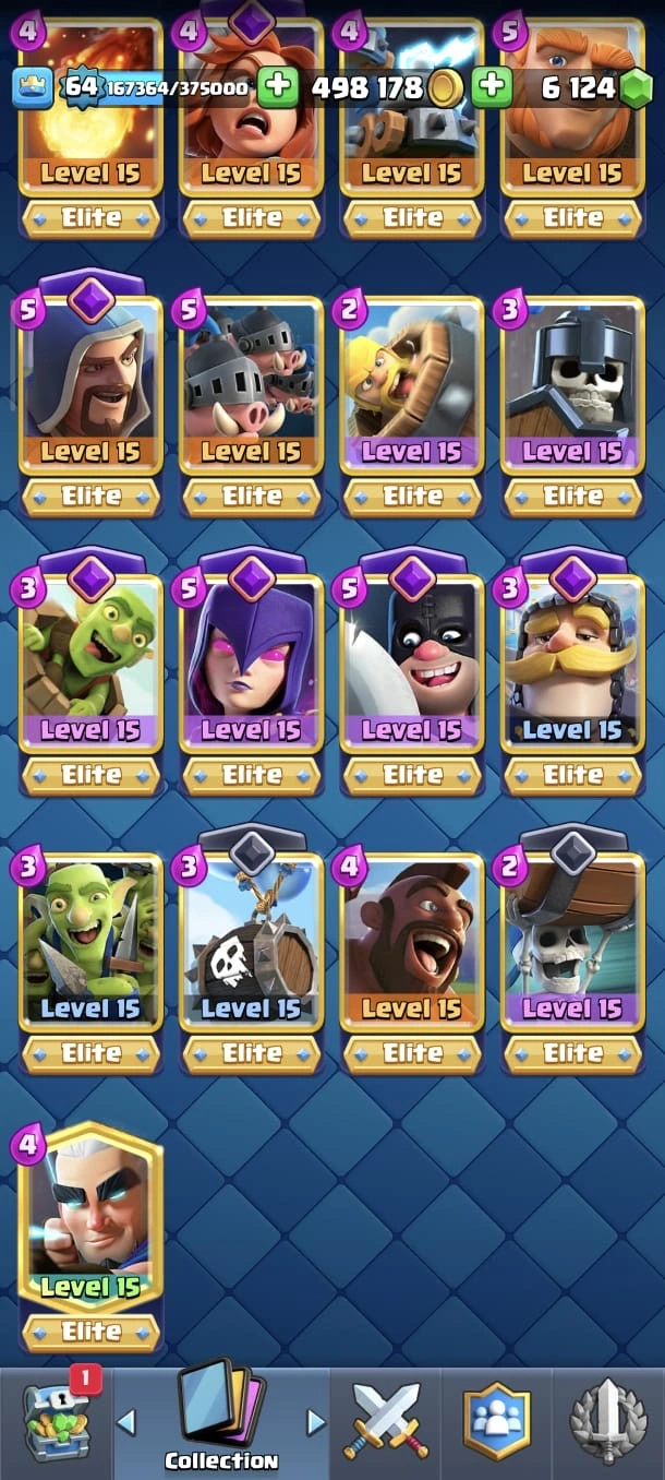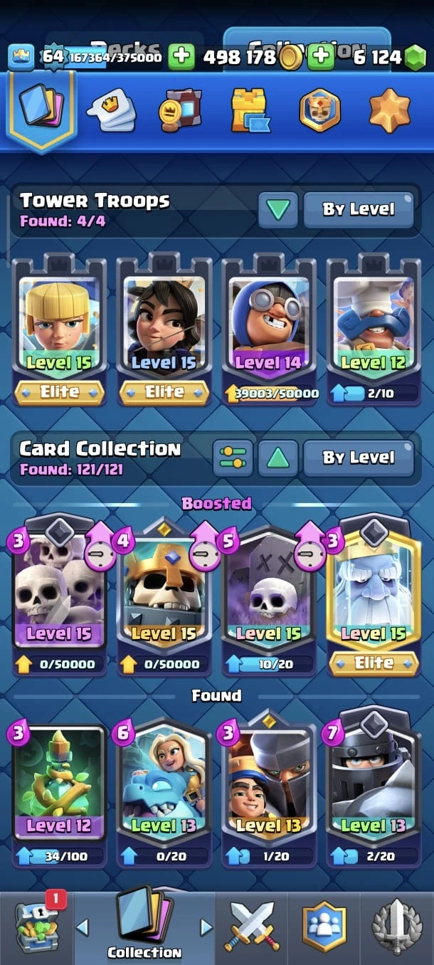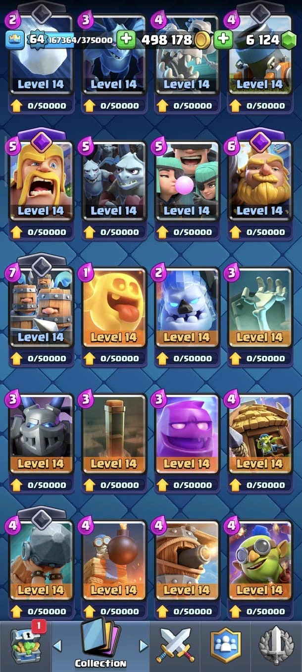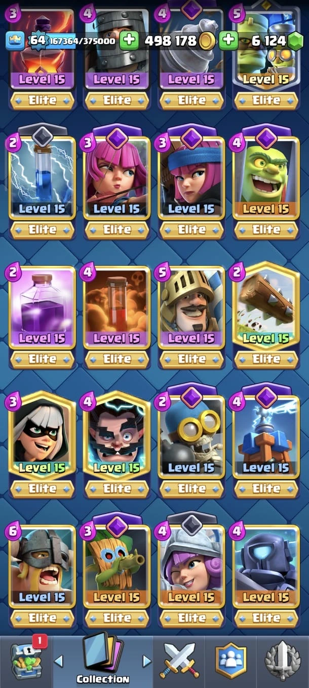 CR LV 64 🔥 Max Cards 105 🔥 Elite 44 🔥 Evo 16 🔥 Emote 141 🔥 Trophy 15000 🔥 Gems 6K + 🔥 Change free 🔥 Very cheap & Safe account🔥
